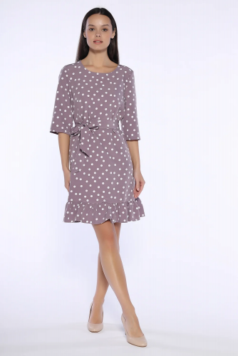 Романтичное платье мини поможет создать нежные и женственные образы весной и летом. Легкое платье имеет изящный округлый вырез горловины, укороченные рукава три четверти. Свободное платье имеет вытачки на груди, благодаря которым платье прекрасно сядет на любую фигуру. Широкий крой платья дополнен комплектным поясом в цвет платья, выгодно подчеркивая талию и моделируя стройный силуэт. Внизу на юбке находится игривая оборка с небольшими складками, которая придает кокетства всему образу. На спине находится милая скромная застежка в виде пуговицы с вырезом капелька. Летнее свободное платье можно надеть в офис, на работу, на торжественное мероприятие или носить в качестве повседневного варианта. Универсальное базовое платье сочетается с разной по стилю обувью: Вы можете выбрать как классические туфли-лодочки, так и босоножки или кеды. Лаконичное платье выполнено из приятной наощупь ткани. Стильное летнее платье придется по вкусу взрослым женщинам, молодым девушкам, подросткам. А благодаря свободному крою платье мини могут носить будущие мамы. Создавайте нежные романтичные образы, дополнив мини платье подходящими аксессуарами и украшениями.