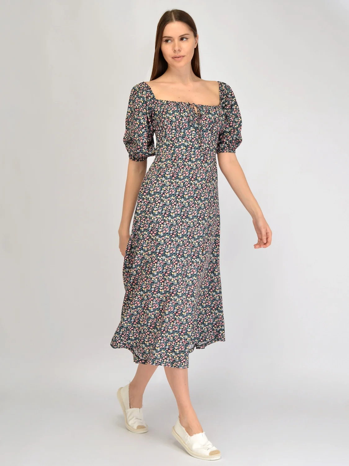 Длинное платье крестьянка станет трендовой новинкой этого сезона. Широкие рукава фонарики на резинке имеют длину до локтя, не давят на руки и сохраняют красивый объем. Вы можете накинуть рукава на плечи, а можете приспустить их. Открытые плечи создают утонченное и женственное настроение. Благодаря такой возможности Вы сможете менять не только расположение рукавов, но и степень открытости в зависимости от погоды или личных предпочтений. На летнем сарафане имеются завязки, которые можно завязать на груди, оставляя зону декольте с ключицей открытой, либо завязать их на шее, перекрестив между собой. Приталенное летнее платье из вискозы позволяет коже дышать, чувствовать себя комфортно на протяжении всего дня, а также элегантно струится при ходьбе. Натуральное платье миди имеет высокий разрез спереди сбоку, добавляя удобства при ходьбе, а также игриво приоткрывая ногу. Платье крестьянка макси подойдет для повседневных прогулок, романтических свиданий, пикника на свежем воздухе. Утонченный силуэт и воздушная походка будут привлекать внимание окружающих и подарят Вам множество комплиментов!