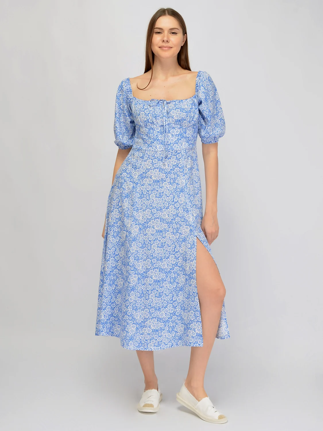 Длинное платье крестьянка станет трендовой новинкой этого сезона. Широкие рукава фонарики на резинке имеют длину до локтя, не давят на руки и сохраняют красивый объем. Вы можете накинуть рукава на плечи, а можете приспустить их. Открытые плечи создают утонченное и женственное настроение. Благодаря такой возможности Вы сможете менять не только расположение рукавов, но и степень открытости в зависимости от погоды или личных предпочтений. На летнем сарафане имеются завязки, которые можно завязать на груди, оставляя зону декольте с ключицей открытой, либо завязать их на шее, перекрестив между собой. Приталенное летнее платье из вискозы позволяет коже дышать, чувствовать себя комфортно на протяжении всего дня, а также элегантно струится при ходьбе. Натуральное платье миди имеет высокий разрез спереди сбоку, добавляя удобства при ходьбе, а также игриво приоткрывая ногу. Платье крестьянка макси подойдет для повседневных прогулок, романтических свиданий, пикника на свежем воздухе. Утонченный силуэт и воздушная походка будут привлекать внимание окружающих и подарят Вам множество комплиментов!