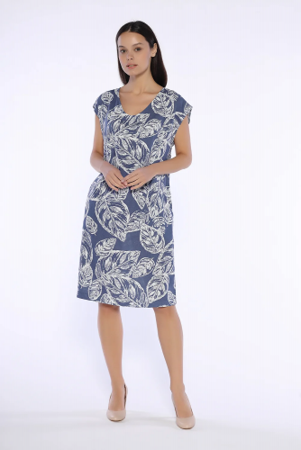 Прямое платье с коротким рукавом - идеальная модель на лето. Лаконичный дизайн платья миди дополнен яркими принтами. Изысканный фигурный вырез горловины подчеркнет красоту шеи и ключицы. На задней части платья располагается разрез, благодаря которому Вы будете чувствовать себя комфортно при ходьбе.Вырез горловины - фигурный. Рукав короткий. Без застёжки. Длина миди. Конструктивный элемент - разрез. Крой прямой. Рекомендована стирка при температуре не более 30С.