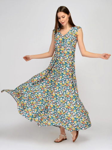Приталенное платье макси без застёжки подарит ощущение лёгкости и комфорта в жаркий сезон. Лаконичный фасон выполнен в ярких цветочных расцветках, которые идеально подойдут для летнего гардероба. Платье макси без рукавов с широкой юбкой позволит Вам чувствовать себя свободно на прогулке и на отдыхе.