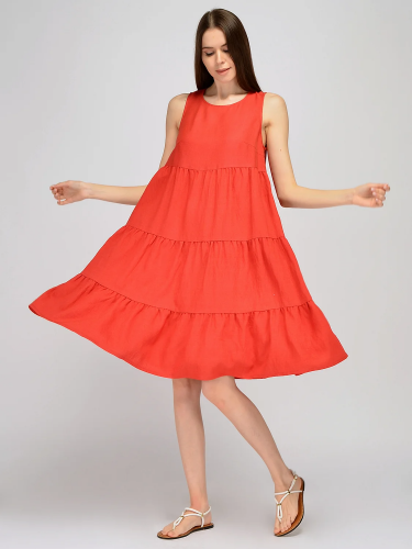 Платье мини без рукавов. Позволь себе женственный образ с открытыми руками в летний сезон. Лаконичный прямой фасон дополнен расклешенной к низу юбкой, придавая образу романтичности. Деликатная округлая горловина приоткрывает ключицу, а открытые руки и свободный покрой обеспечат свежесть и комфорт в жаркое время года. Вырез горловины округлый. Без рукава. Вид застежки молния. Длина мини. Модель юбки расклешенная к низу. Покрой прямой. Детали одежды рюши, воланы. Рекомендована стирка при температуре не более 30С. В составе платья мини хлопок, что позволит Вашей коже дышать и сохранить первоначальный вид изделия надолго. Платье без рукавов дополнит офисный или повседневный стиль. Выбирайте удобную обувь на высоком или на низком ходу, сумку натуральных оттенков и любимые украшения, подходящие к подобранному образу.
