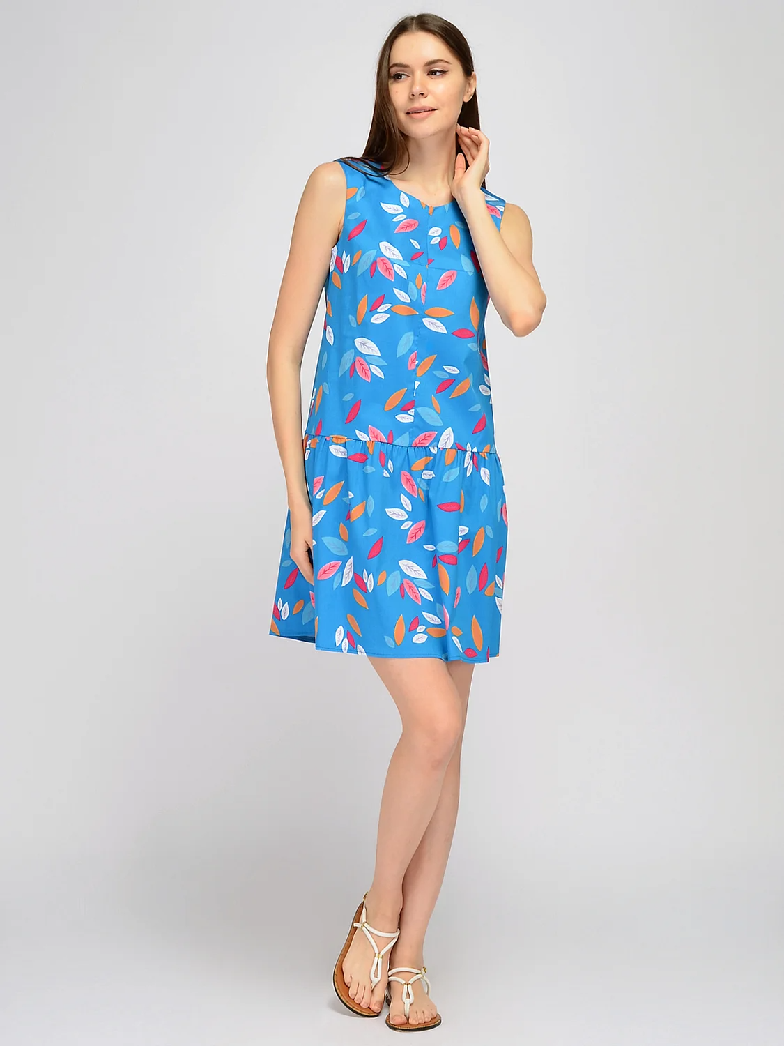 Платье мини без рукавов. Позволь себе женственный образ с открытыми руками в летний сезон. Лаконичный прямой фасон дополнен расклешенной к низу юбкой, придавая образу романтичности. Деликатная округлая горловина приоткрывает ключицу, а открытые руки и свободный покрой обеспечат свежесть и комфорт в жаркое время года. Вырез горловины округлый. Без рукава. Вид застежки молния. Длина мини. Модель юбки расклешенная к низу. Покрой прямой. Детали одежды рюши, воланы. Рекомендована стирка при температуре не более 30С. В составе платья мини хлопок, что позволит Вашей коже дышать и сохранить первоначальный вид изделия надолго. Платье без рукавов дополнит офисный или повседневный стиль. Выбирайте удобную обувь на высоком или на низком ходу, сумку натуральных оттенков и любимые украшения, подходящие к подобранному образу.