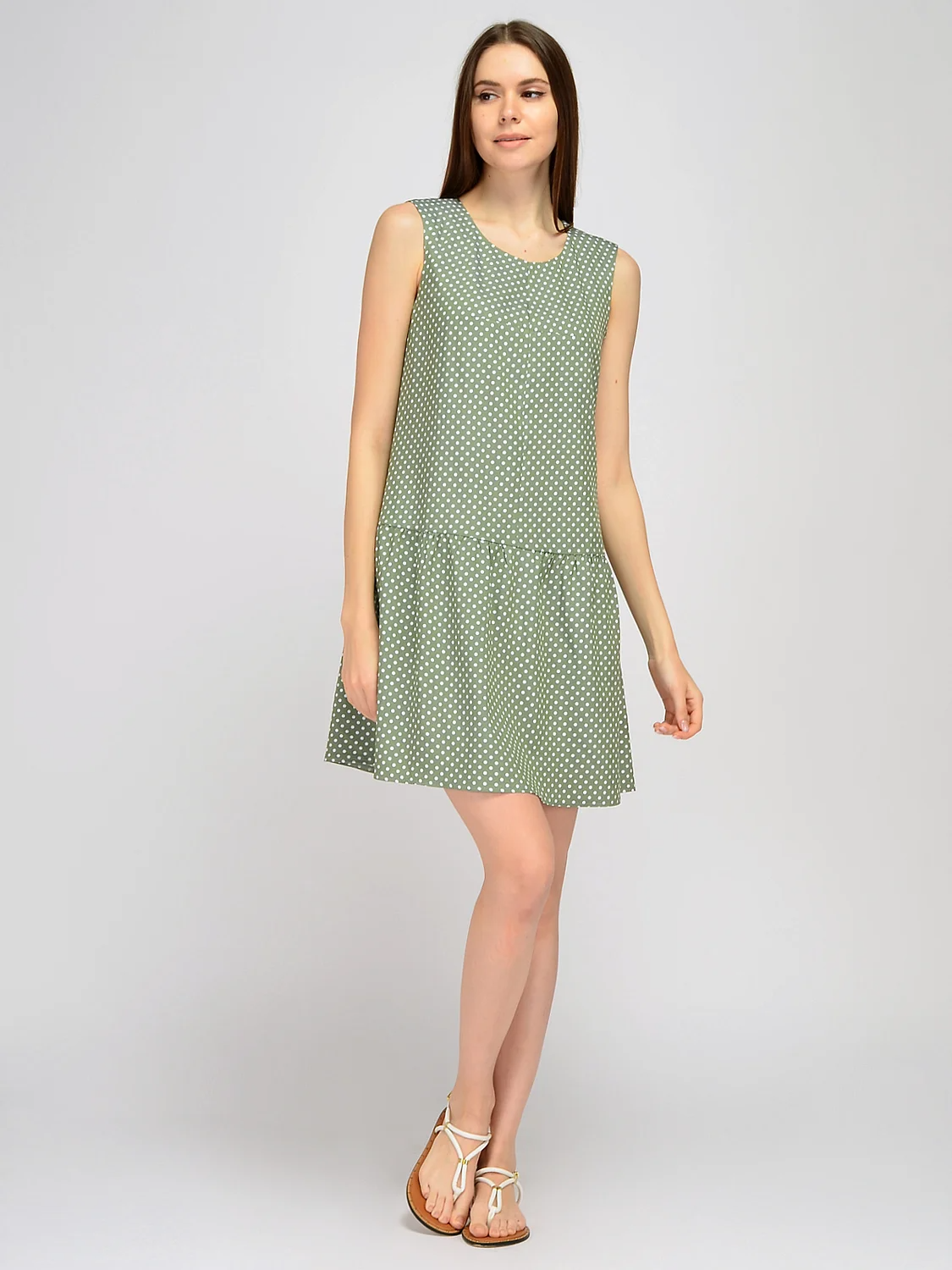 Платье мини без рукавов. Позволь себе женственный образ с открытыми руками в летний сезон. Лаконичный прямой фасон дополнен расклешенной к низу юбкой, придавая образу романтичности. Деликатная округлая горловина приоткрывает ключицу, а открытые руки и свободный покрой обеспечат свежесть и комфорт в жаркое время года. Вырез горловины округлый. Без рукава. Вид застежки молния. Длина мини. Модель юбки расклешенная к низу. Покрой прямой. Детали одежды рюши, воланы. Рекомендована стирка при температуре не более 30С. В составе платья мини хлопок, что позволит Вашей коже дышать и сохранить первоначальный вид изделия надолго. Платье без рукавов дополнит офисный или повседневный стиль. Выбирайте удобную обувь на высоком или на низком ходу, сумку натуральных оттенков и любимые украшения, подходящие к подобранному образу.
