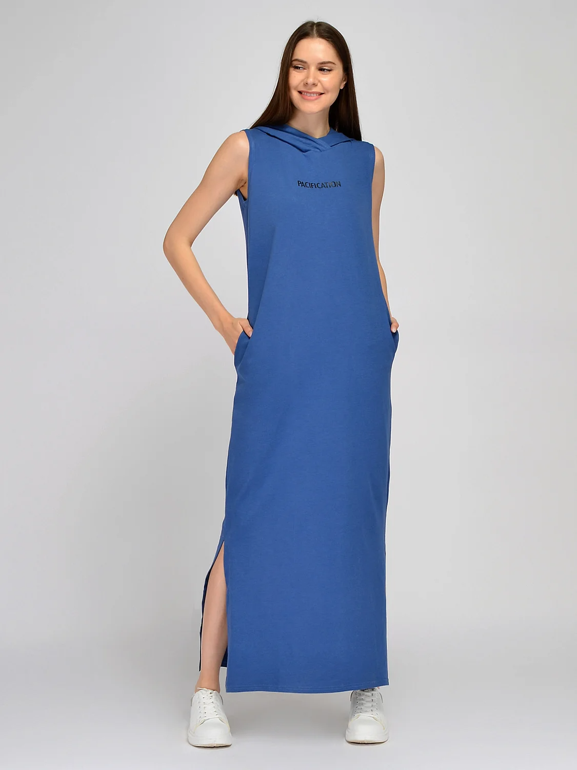 Спортивное платье макси с капюшоном и разрезами по бокам. Эффектное спортивное платье макси из коллекции Active никого не оставит равнодушным. По бокам на платье располагаются разрезы, которые служат не только для удобства при ходьбе, но и придают Вашему образу смелости и женственности. Лаконичный прямой крой платья дополнен деликатным принтом на передней полочке. Спортивное платье с капюшоном выполнено из материала наивысшего качества, который обладает высокой износостойкостью. Вы можете быть уверены, что платье макси без рукавов будет дарить Вам ощущение комфорта не один сезон. составе платья хлопок 100%. Вырез горловины - круглый. Отделка горловины капюшон. Без рукава. Без застёжки. С разрезами с двух сторон. Длина макси. Крой прямой. Несъёмный капюшон. Карманы в шве. Фактура материала - трикотаж. Декоративный элемент - на передней полочке принт. Рекомендована стирка при температуре не более 30С. Дерзкое и современное платье макси из коллекции Active обеспечит Вам незабываемый яркий образ. Завершите его обувью на низком ходу и соберите волосы в хвост. В качестве аксессуара подберите подходящую поясную сумку или рюкзак. Спортивное платье с капюшоном - это идеальный вариант для всех, кто ведёт Active’ный образ жизни. Выбирайте платье макси с разрезами для прогулки, похода в кино, в гости или для любого активного мероприятия.
