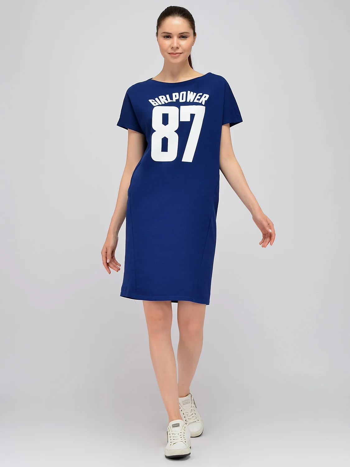 Спортивное платье мини с принтом. Разбавьте свой летний гардероб комфортным спортивным платьем мини из коллекции Active. Прямой крой платья с короткими рукавами немного облегает бёдра и создаёт женственный силуэт. Горловина платья оформлена округлым вырезом, подчёркивающим ключицу. В составе спортивного платья 100%хлопок, который позволит Вам чувствовать себя максимально комфортно в жаркое время года.В составе платья хлопок 100%. Вырез горловины - круглый. Без отделки горловины. Рукав короткий. Без застёжки. Декоративный элемент - на передней полочке принт. Длина мини. Крой прямой. Без карманов. Рукава цельнокроеные. Фактура материала - трикотаж. Рекомендована стирка при температуре не более 30С. Спортивное платье мини Active’но впишется в Ваш повседневный стиль. Собираетесь ли Вы на прогулку, в путешествие, в гости или на занятия спортом - в любой ситуации Вы будете чувствовать себя комфортно и выглядеть современно. Завершите свой Active’ный образ спортивной обувью и поясной сумкой.