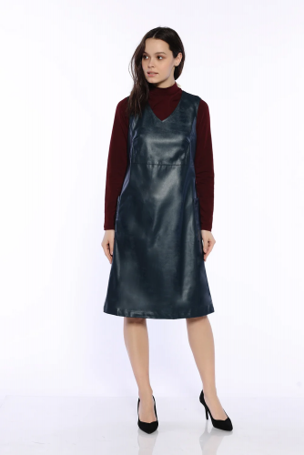 Приталенное женское платье футляр с контрастными декоративными вставками составит стильный строгий образ. Изящное оформление горловины и акцентный двусторонний пояс подчркнут Вашу женственность.