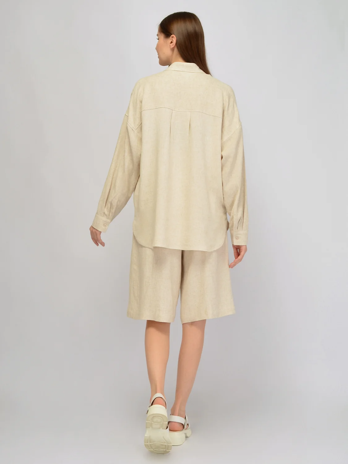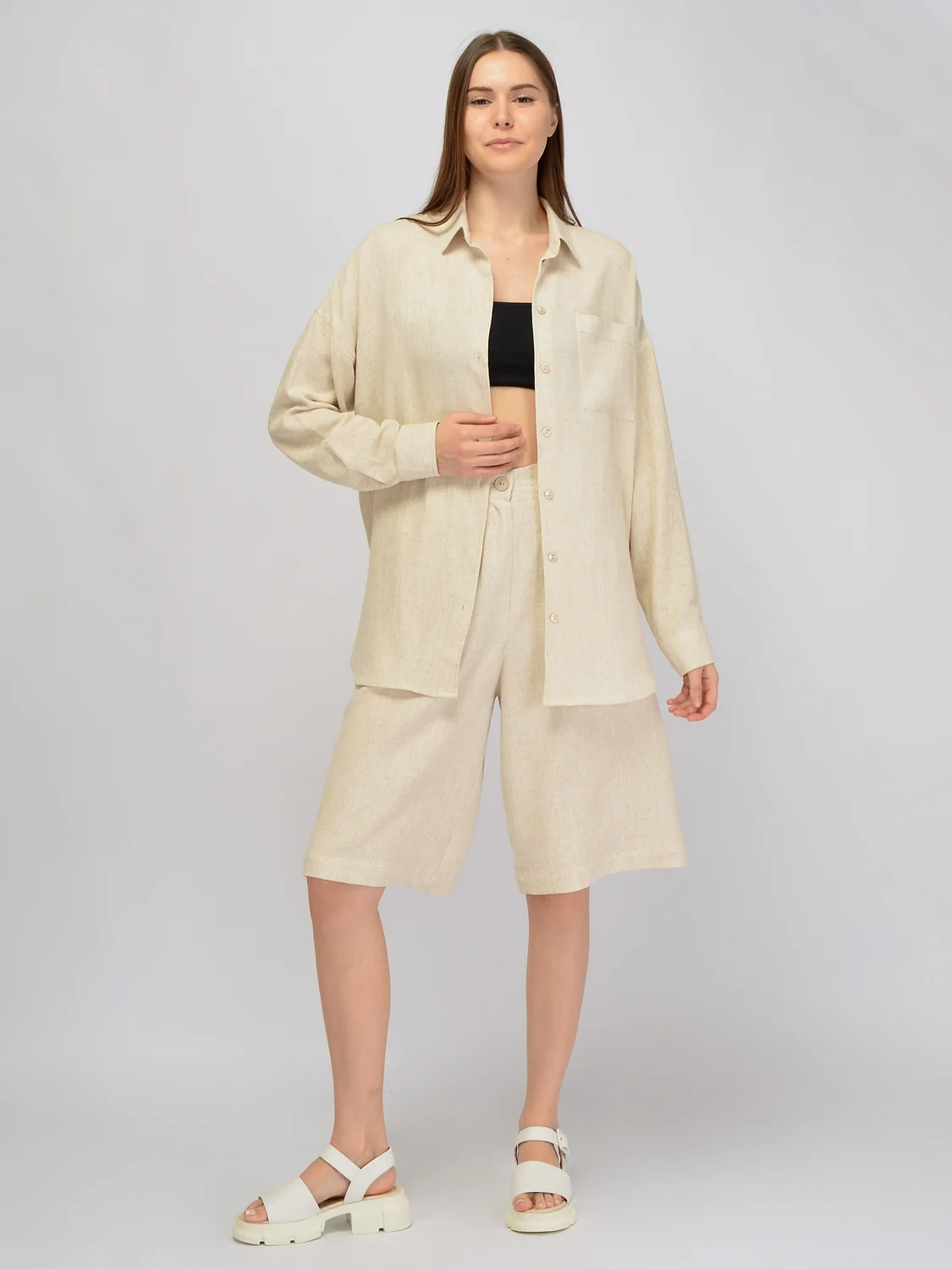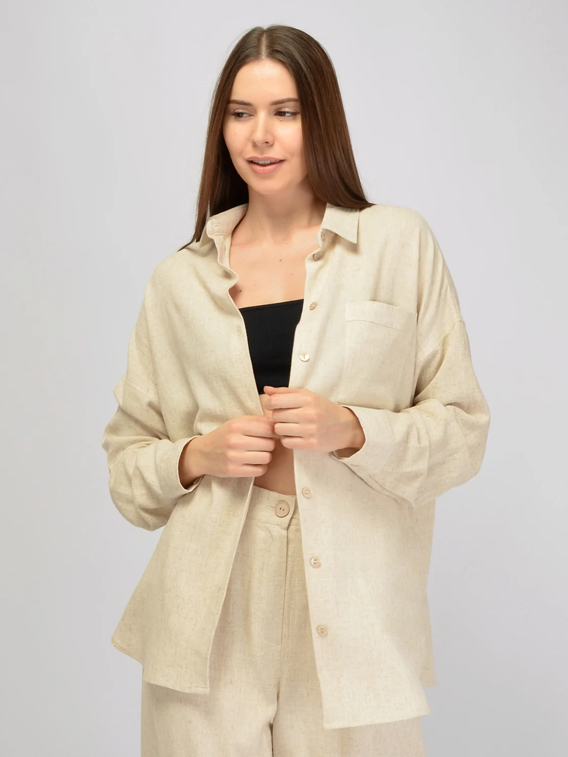 Базовая рубашка оверсайз из натуральной ткани станет вашей любимой летней новинкой. Свободная рубашка прямого кроя выполнена из 100% вискозы, которая обеспечит Вам максимальный комфорт в самый жаркий день. Длинная рубашка с отложным воротником застегивается на пуговицы. Трендовый фасон дополнен накладным карманом на груди. На спине располагается кокетка с центральной складкой. По бокам рубашка имеет фигурные вырезы. Вы можете носить объемную тунику навыпуск или заправлять ее за пояс. Дышащая рубашка станет идеальным дополнением повседневного стиля для работы или отдыха, а также пригодится в отпуске на море. Актуальный фасон и оптимальная длина подойдут как молодым девушкам, так и взрослым женщинам разного роста и комплекции. Удлиненная рубашка прямого кроя не облегает фигуру и скрывает ее возможные недостатки. Сочетайте льняную рубашку с комплектными свободными шортами-кюлотами ниже колена, юбками или джинсами.