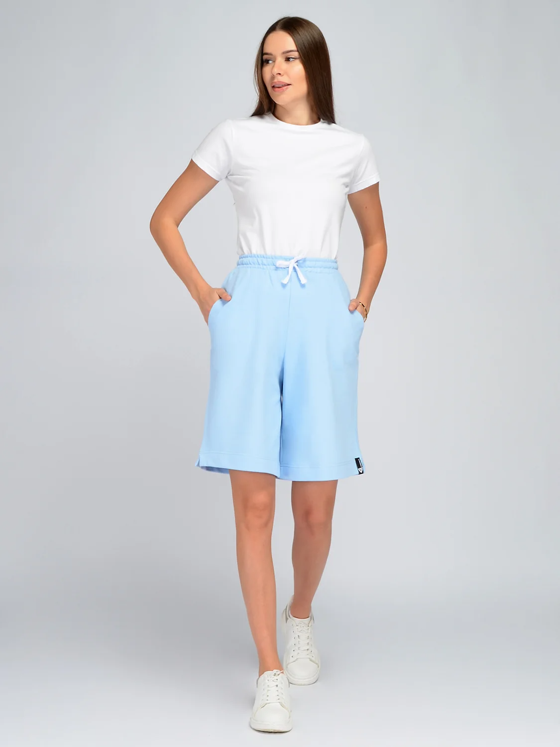 Трикотажные шорты станут неотъемлемой частью спортивного стиля. Высокая посадка подчеркнет линию талии и смоделирует правильные пропорции фигуры. Удобный пояс на резинке дополнен шнурком, обеспечивая Вам идеальную посадку на талии. Удлиненные шорты придутся по вкусу девушкам и женщинам разного роста и телосложения. По бокам находятся удобные боковые карманы, без которых сложно представить практичный образ для спорта, прогулки или дома. По бокам на шортах располагаются аккуратные декоративные разрезы, добавляя образу изюминку. На левой брючине находится декоративный жаккардовый флажок контрастного цвета с логотипом. Базовые шорты выполнены из 100% хлопка, а это значит, что Вы будете чувствовать себя комфортно даже в жаркий летний день на прогулке, пикнике, дома или на тренировке. Качественная хлопковая ткань сохранит свой первоначальный вид после многих стирок, и шорты будут радовать Вас не один сезон! Дополните удобный современный образ топом, футболкой или худи. Обувь выбирайте спортивную на плоском ходу.