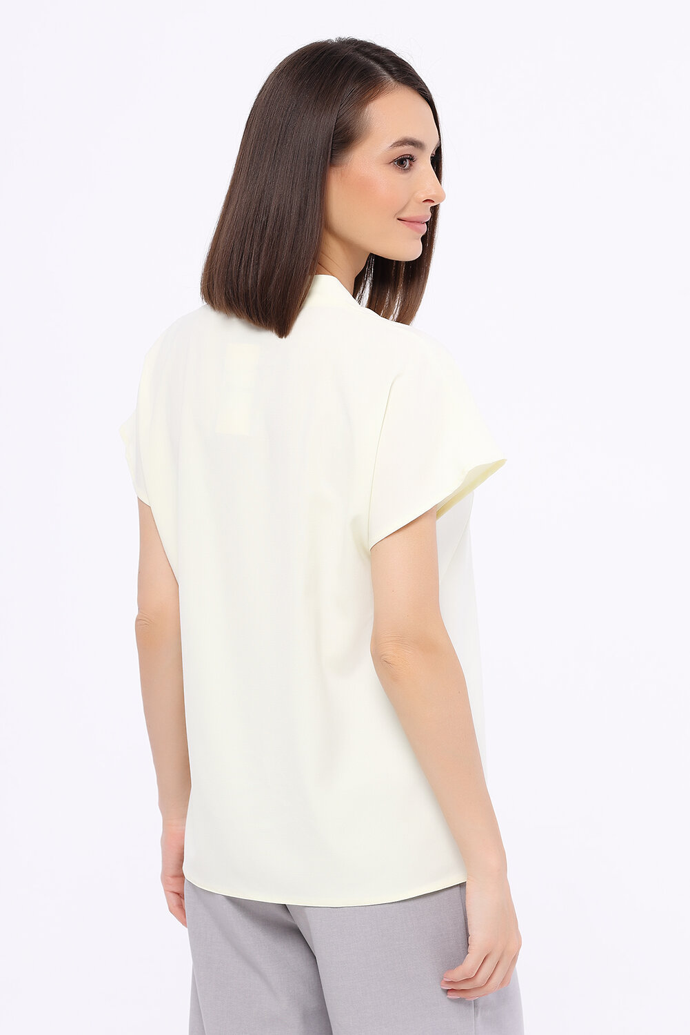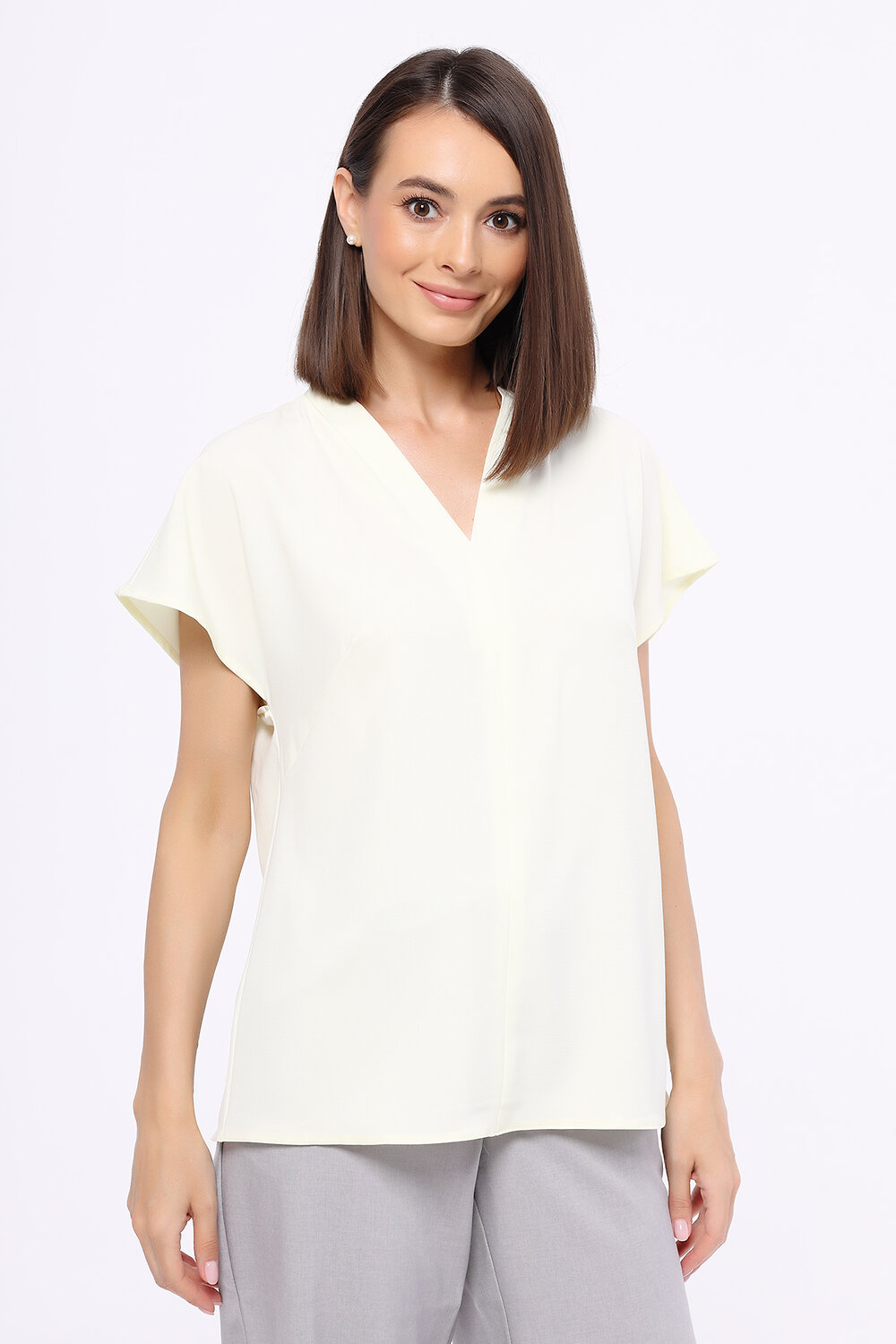 Блузка с коротким рукавом станет универсальным элементом Вашего гардероба. Блузка прямого кроя с коротким рукавом позволит Вам чувствовать себя свободно, комфортно и женственно. Утончённый V-образный вырез выгодно подчёркивает линию шеи. Блузка прямого кроя гармонично впишется как в офисный, так и в повседневный стиль.