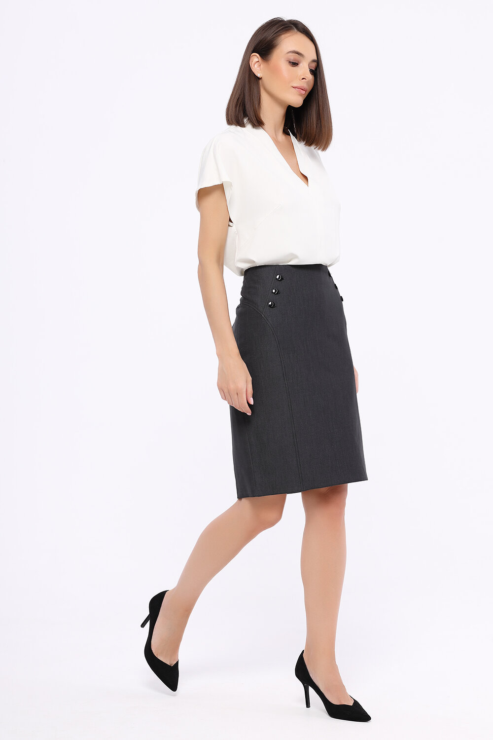 Блузка с коротким рукавом замечательно смотрится и навыпуск, и заправленной за пояс. В зависимости от выбранного Вами стиля, блузку с V-образным вырезом сочетайте с джинсами и обувью на низком ходу для создания современного образа в стиле кэжуал. А если нужно подобрать деловой комплект, выбирайте обувь на высоком ходу и классические брюки и юбки из нашей коллекции.