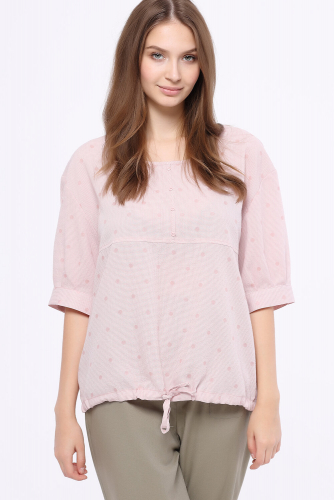 Прямая блузка свободного силуэта гармонично дополнит Ваш весенний гардероб. В составе блузки хлопок, благодаря чему Вы будете чувствовать себя комфортно в жаркую погоду. Округлая горловина и укороченный рукав до локтя создают мягкий женственный образ. Декоративные пуговицы и кулиска придадут Вашему образу романтичности. Прямая блузка с кулиской поможет завершить офисный или повседневный образы.