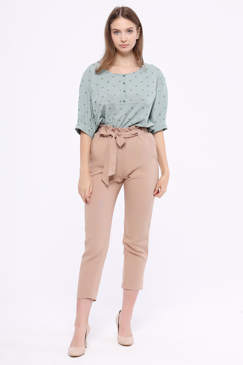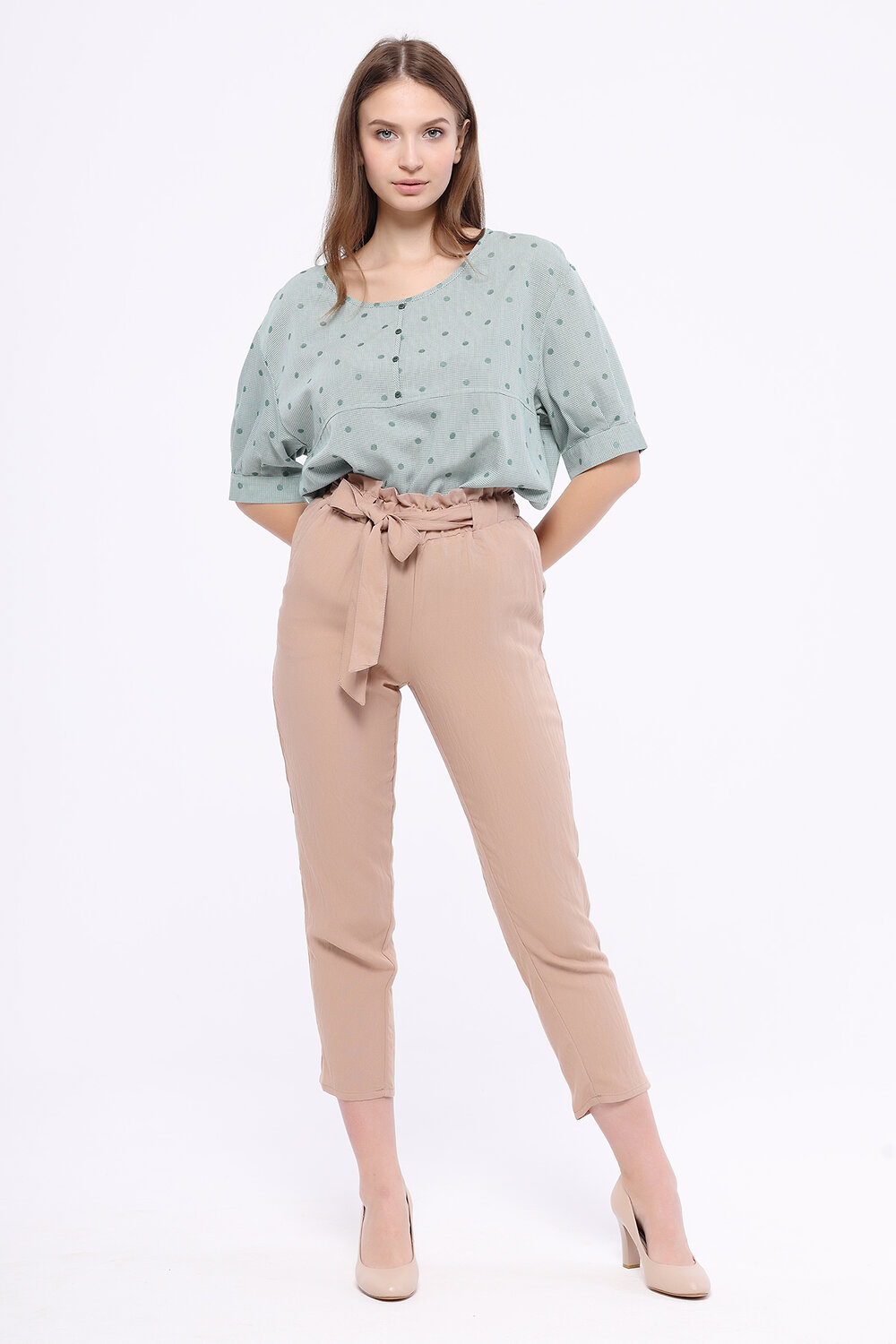 Лаконичный крой блузки позволяет дополнять её подходящими Вашему вкусу и настроению аксессуарами. Для завершений офисного образа сочетайте блузку с классическими брюками или юбкой. Для образа в стиле кэжуал наденьте джинсы и обувь на низком ходу.