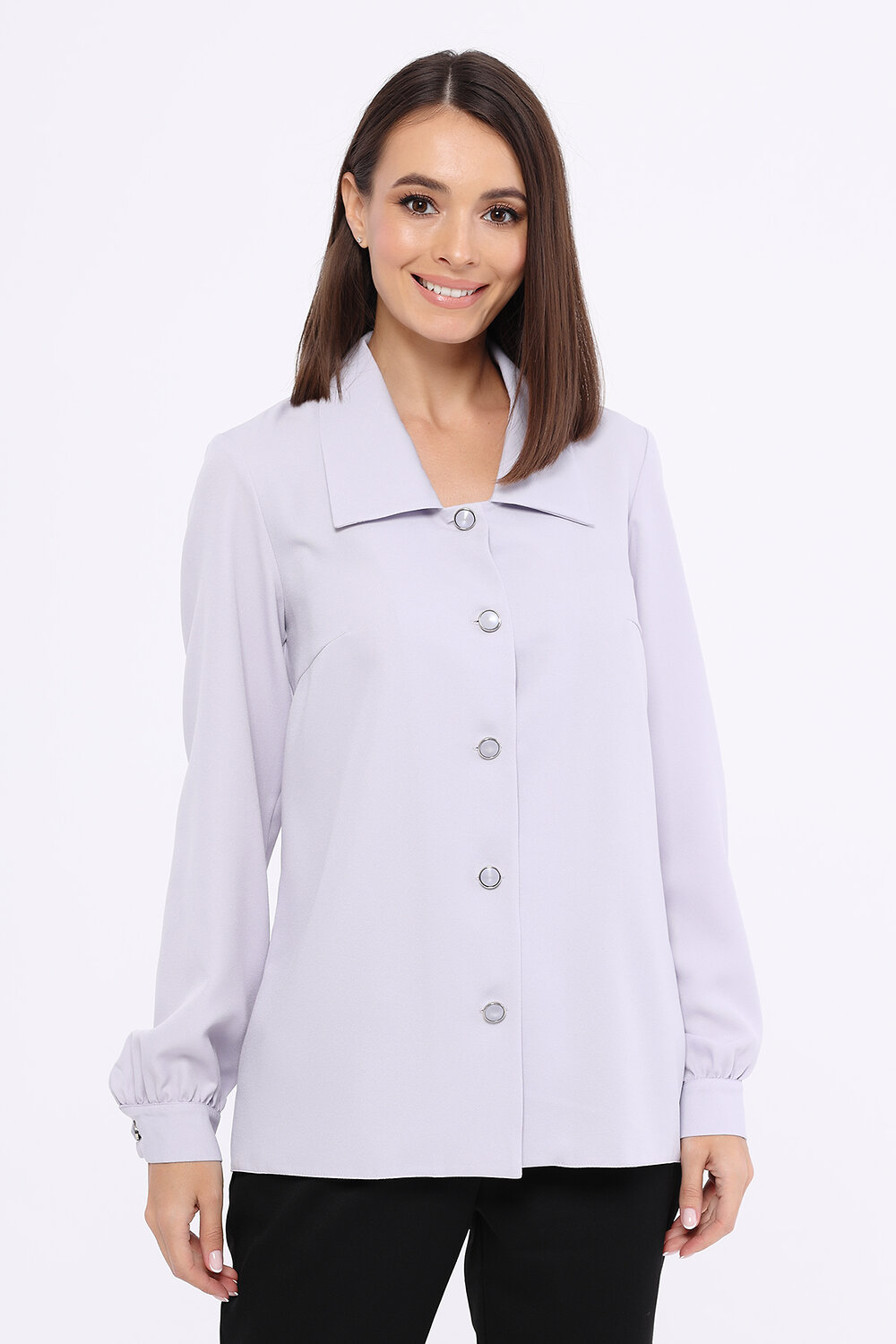 Прямая блузка с фигурным вырезом.Прямая блузка с фигурным вырезом - беспроигрышный вариант для современного офисного стиля. Аккуратный отложной воротник и длинные рукава составляют строгий деликатный образ. Ткань блузки лёгкая и воздушная, что придаёт образу утончённости и элегантности. Классическая блузка на пуговицах стильно будет смотреться при любых обстоятельствах.Вырез - фигурный. Отделка горловины - воротник. Воротник отложной. Рукав длинный. Рукава втачные. Вид застёжки - пуговицы. Декоративный элемент - пуговицы. Крой прямой. Рекомендована стирка при температуре не более 30С.Дополнив блузку жакетом, юбкой карандаш или классическими брюками, Вы создадите строгий деловой образ. С помощью прямой блузки с фигурным вырезом также можно создать стильный городской образ. Заправьте её в джинсы на высокой талии, наденьте туфли с острым носом на высоком или на низком ходу.