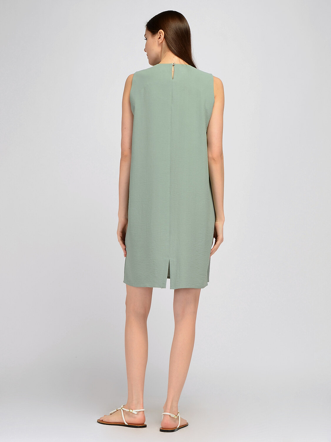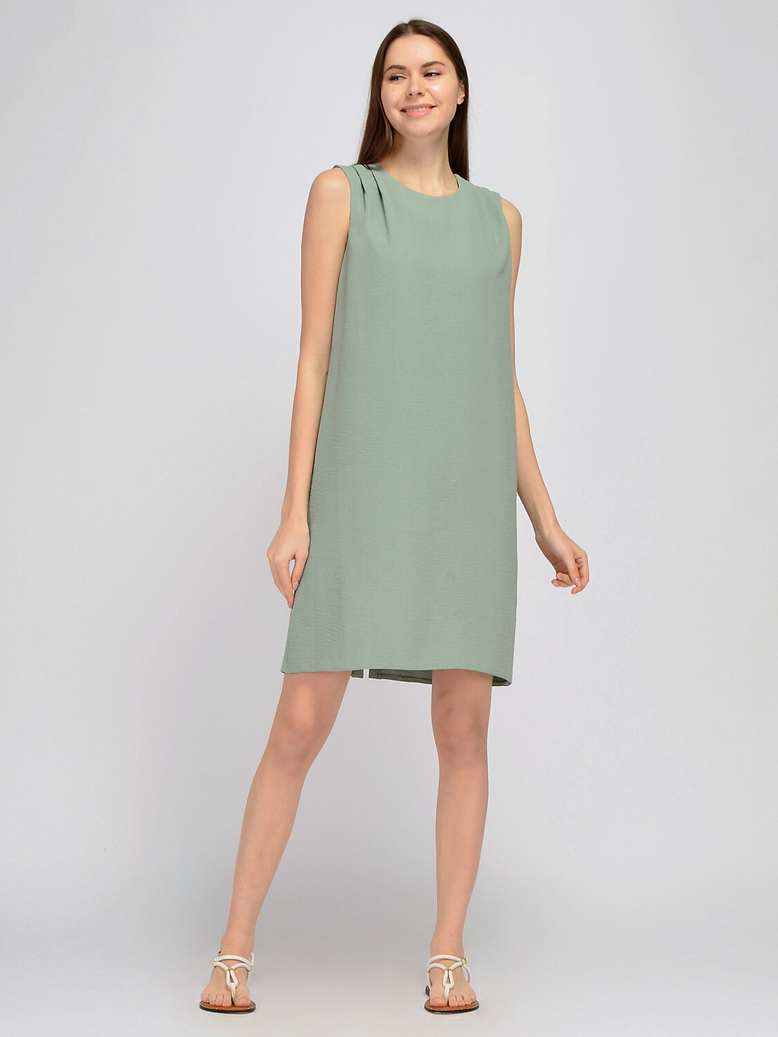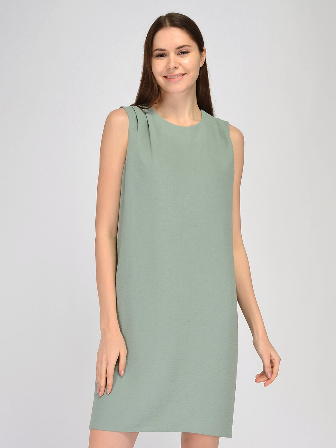 Платье мини без рукавов. Удобное и лаконичное платье без рукавов гармонично впишется в офисный или повседневный стиль в летнее время. Деликатный округлый вырез и декоративные складки на плечах позволят Вам чувствовать себя комфортно и элегантно. Прямой кроя платья при необходимости корректирует особенности фигуры. Вырез горловины круглый. Без рукавов. Вид застежки пуговицы. Декоративный элемент складки. Длина мини. Конструктивный элемент разрез. Крой прямой. Без карманов. Рекомендована стирка при температуре не более 30С. Лаконичное платье миди в трендовых оттенках идеально подойдет для деловой встречи, прогулки или торжественного мероприятия. Выбирайте обувь на высоком или на низком ходу, исходя из повода и личных предпочтений. Дополните образ любимыми украшениями и удобной сумкой.