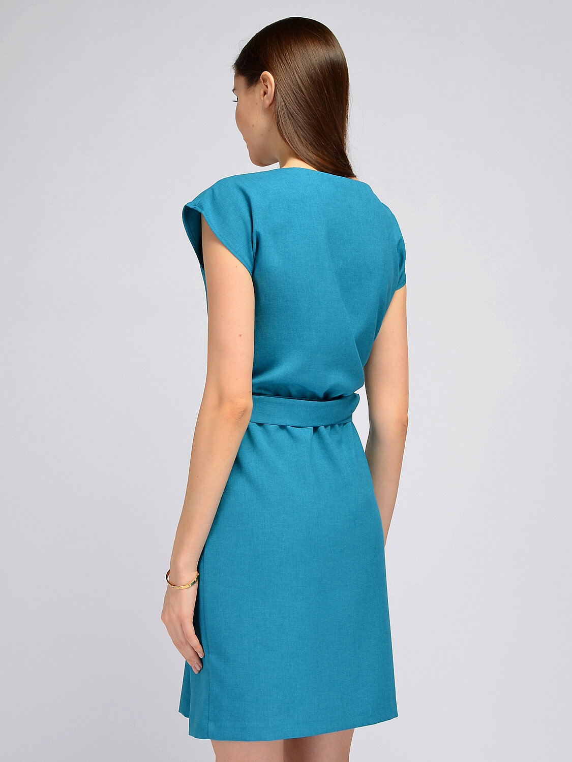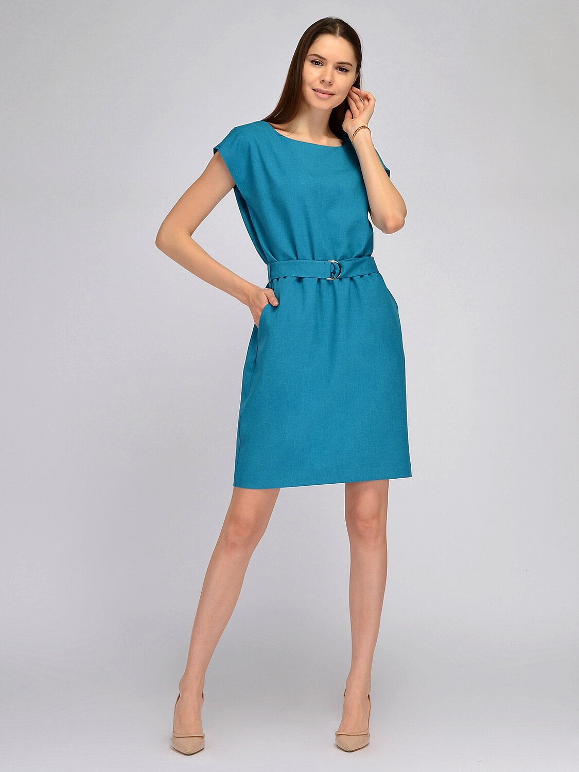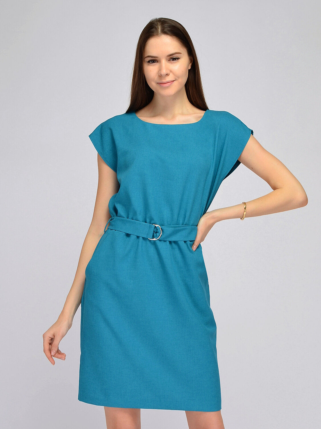 В составе платья полиэстер 50%, вискоза 50%. Вырез горловины - круглый. Рукав короткий. Комплектация - пояс. Без застёжки. Длина - миди. Крой расклешенный к низу. Модель платья - приталенное. Карманы втачные. Рукав цельнокроеный. Длина миди. Рекомендована стирка при температуре не более 30С.