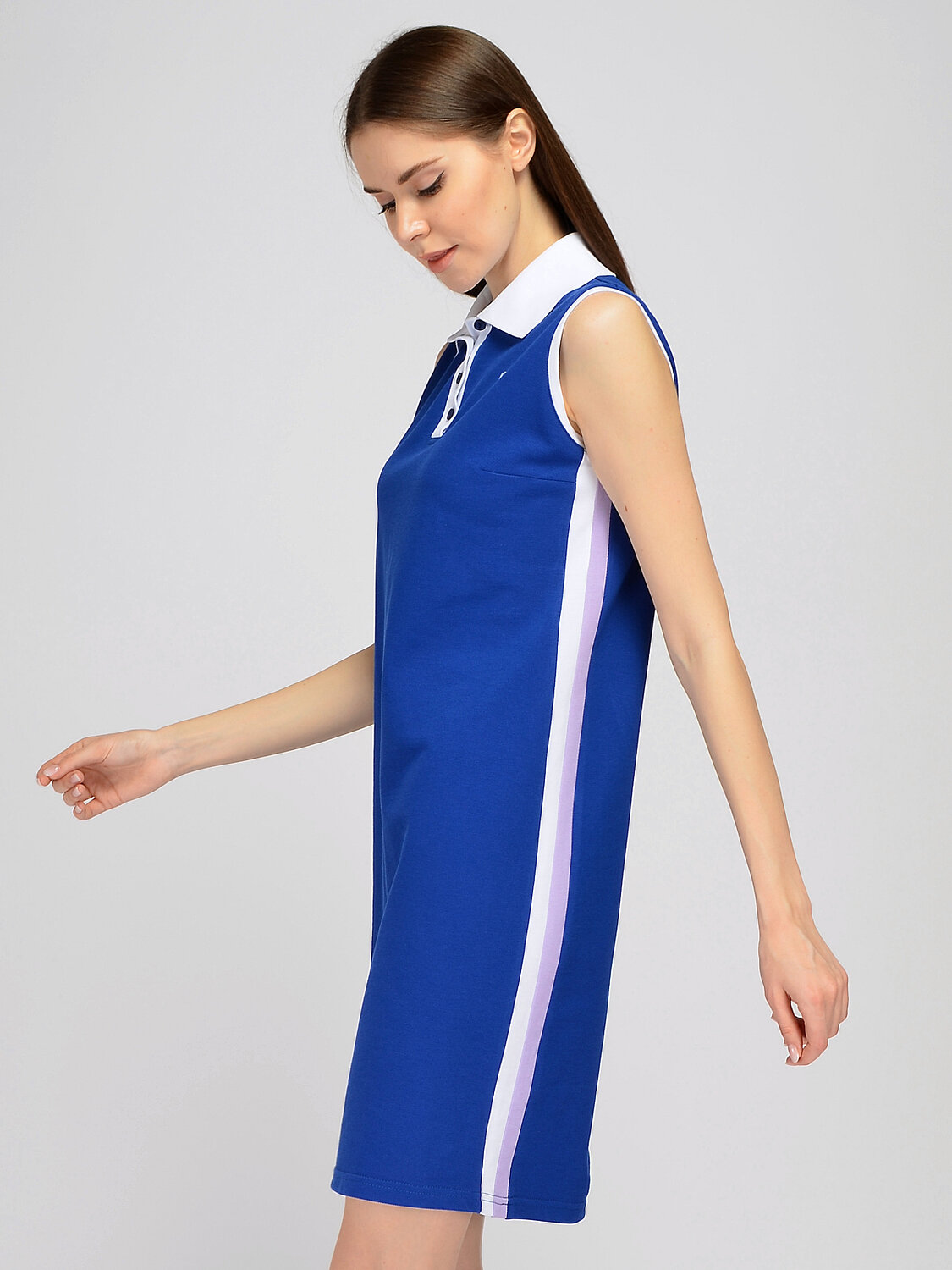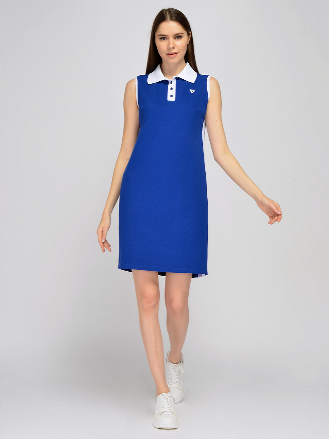 Платье-поло без рукава. Уникальное платье-поло без рукава из линейки Active станет беспроигрышным вариантом для летнего образа. Платье-поло сшито из высококачественного хлопка, обладающего высокой износостойкостью, благодаря которому изделие сохранит свой изначальный вид на протяжении нескольких сезонов. Лаконичный приталенный крой платья мини дополнен контрастными декоративными вставками в боковых швах, а также контрастным отложным воротником и вышитым логотипом. В составе платья хлопок 100%. Вырез горловины - круглый. Отделка горловины - воротник. Длина рукав без рукава. Вид застёжки пуговицы. Воротник отложной. Декоративны элеменет - вышитый логотип. Длина мини. Без разреза. Крой приталенный. Без карманов. Фактура материала - трикотаж. Контрастные вставки в боковых швах. Рекомендована стирка при температуре не более 30С. Платье-поло длины мини создаст современный спортивный образ в стиле кэжуал. Платье-поло с контрастными вставками подойдёт для похода в кино, прогулки, для занятий спортом и для различных Active’ных мероприятий. Завершите свой образ удобной спортивной обувью на низком ходу и поясной сумкой.