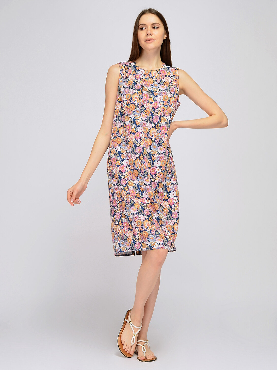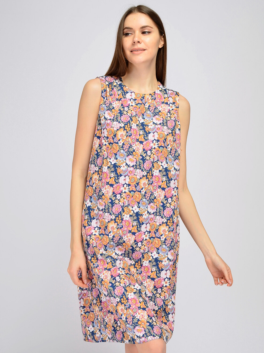Платье мини без рукавов. Удобное и лаконичное платье без рукавов гармонично впишется в офисный или повседневный стиль в летнее время. Деликатный округлый вырез и декоративные складки на плечах позволят Вам чувствовать себя комфортно и элегантно. Прямой кроя платья при необходимости корректирует особенности фигуры. Вырез горловины круглый. Без рукавов. Вид застежки пуговицы. Декоративный элемент складки. Длина мини. Конструктивный элемент разрез. Крой прямой. Без карманов. Рекомендована стирка при температуре не более 30С. Лаконичное платье миди в трендовых оттенках идеально подойдет для деловой встречи, прогулки или торжественного мероприятия. Выбирайте обувь на высоком или на низком ходу, исходя из повода и личных предпочтений. Дополните образ любимыми украшениями и удобной сумкой.