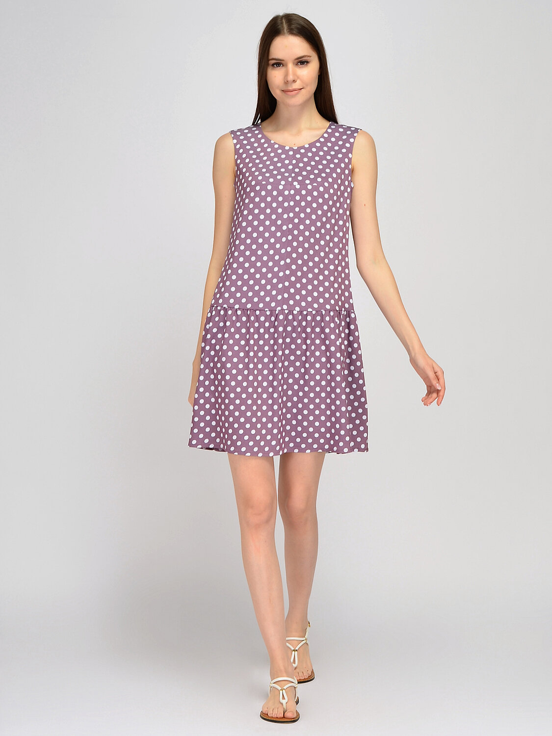 Платье мини без рукавов. Позволь себе женственный образ с открытыми руками в летний сезон. Лаконичный прямой фасон дополнен расклешенной к низу юбкой, придавая образу романтичности. Деликатная округлая горловина приоткрывает ключицу, а открытые руки и свободный покрой обеспечат свежесть и комфорт в жаркое время года. Вырез горловины округлый. Без рукава. Вид застежки молния. Длина мини. Модель юбки расклешенная к низу. Покрой прямой. Детали одежды рюши, воланы. Рекомендована стирка при температуре не более 30С. В составе платья мини хлопок, что позволит Вашей коже дышать и сохранить первоначальный вид изделия надолго. Платье без рукавов дополнит офисный или повседневный стиль. Выбирайте удобную обувь на высоком или на низком ходу, сумку натуральных оттенков и любимые украшения, подходящие к подобранному образу.