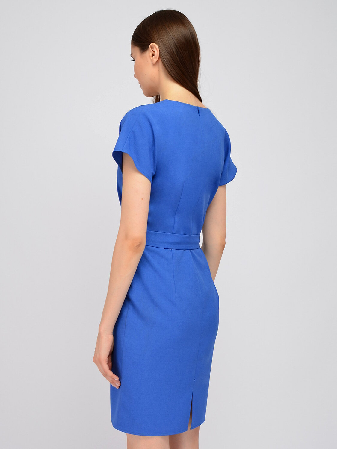Приталенное платье с разрезом не привязано к определённому стилю. Платье мини с декоративными складками подойдёт как для офисного стиля, так и для повседневного. Законченный образ будет зависеть от Вашего настроения. Обувь на низком ходу и удобная сумка помогут создать стильный повседневный образ. А обувь на высоком ходу и деликатная сумочка дополнят романтичный или деловой образ.