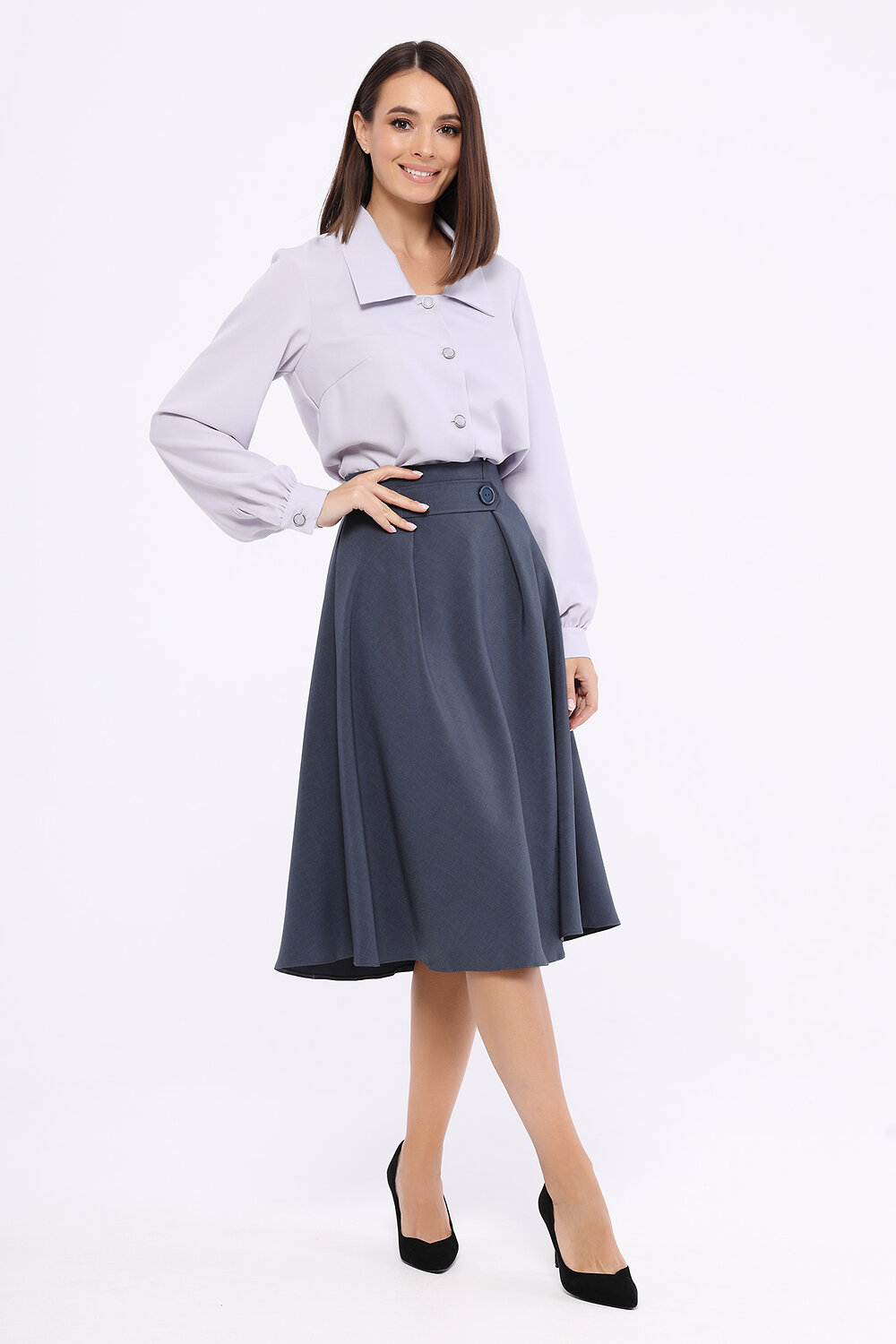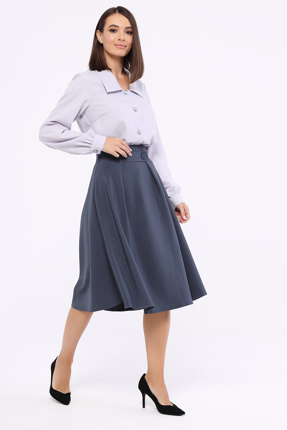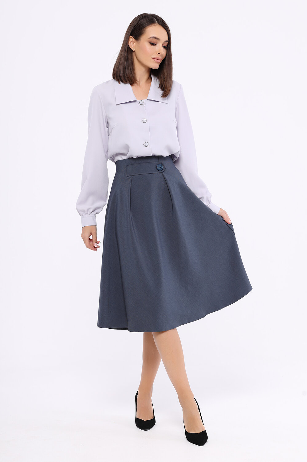 Расклешенная к низу юбка миди.Практичная юбка миди с завышенной талией - незаменимая вещь в гардеробе. Универсальный фасон одинаково гармонично будет выглядеть в офисе, в повседневном стиле или на вечернем мероприятии. Завышенная посадка визуально делает талию уже. Широкий крой юбки позволит Вам чувствовать себя свободно и уверенно.Вид застёжки - молния. Декоративные элементы - пуговицы, защипы. Длина миди. Крой - расклешёнынй к низу. С подкладкой. Покрой трапеция. Без карманов. Рекомендована стирка при температуре не более 30С.