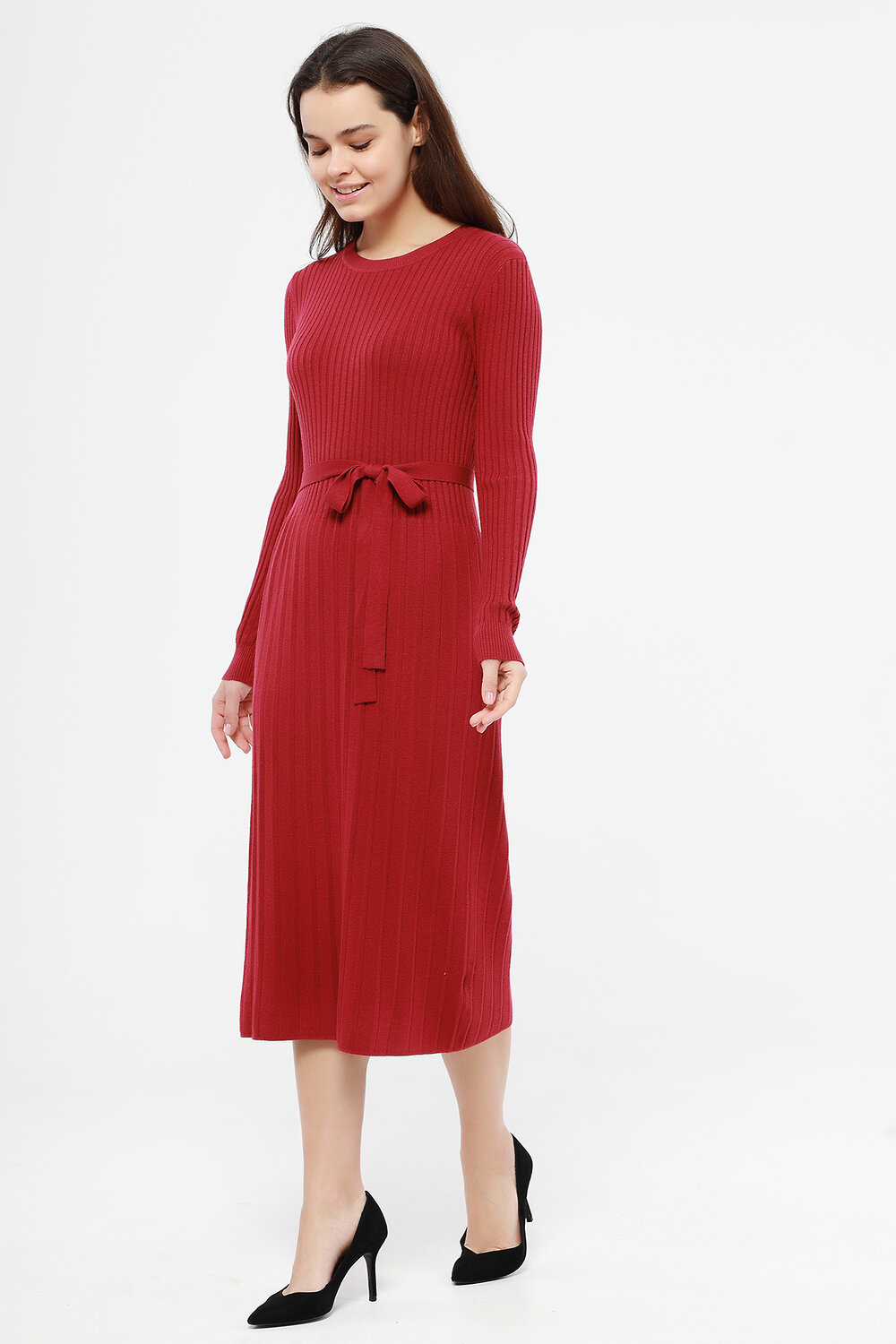 Платье женское из мягкого вязаного трикотажа приталенного силуэта с длинным рукавом. Юбка прямая -плиссе.Изделие дополнено поясом.