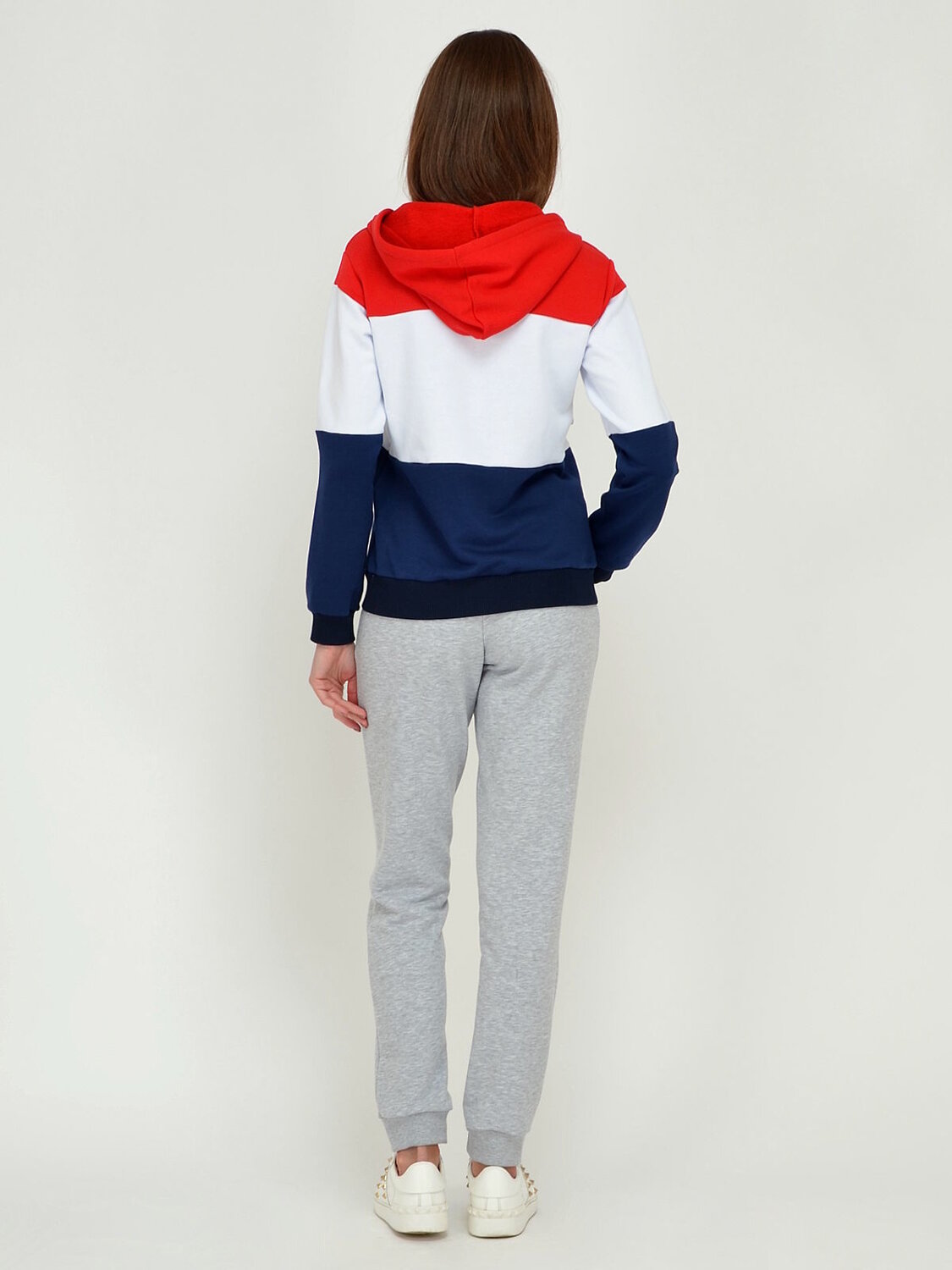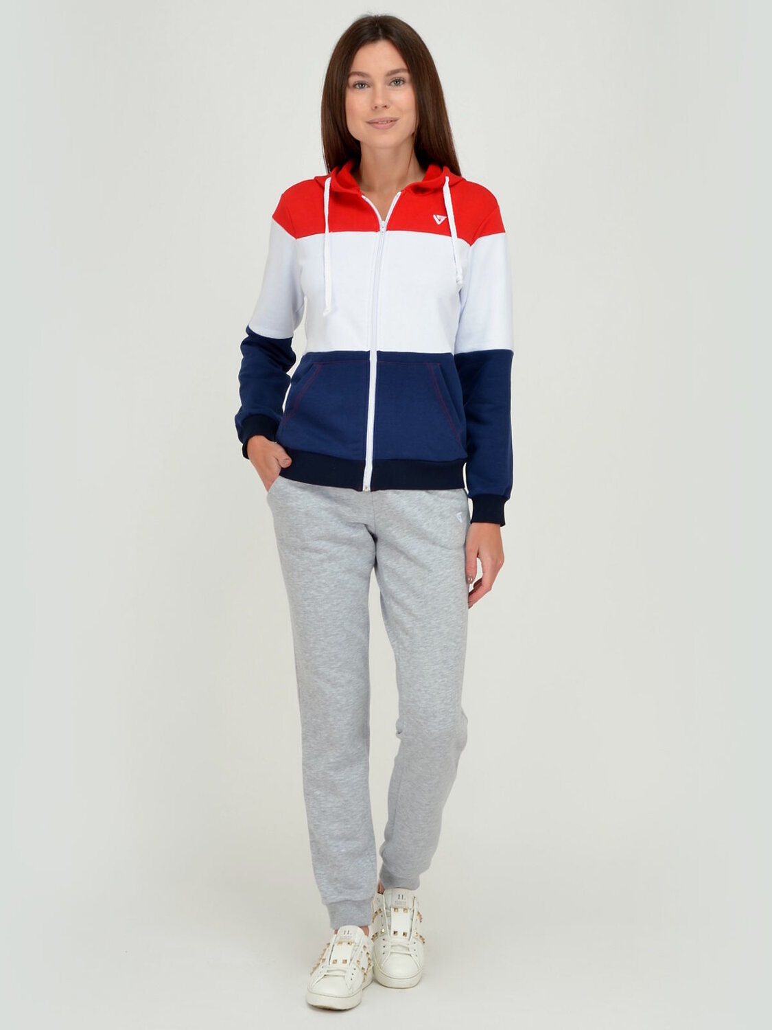 Толстовка женская приталенного кроя с несъемным капюшоном. и разъемной молнией Высокая доля хлопка обеспечивает повышенную износостойкость материала. Ткань содержит эластан, за счет этого тянется, но не теряет форму после стрики. На полочке карман"кенгуру".