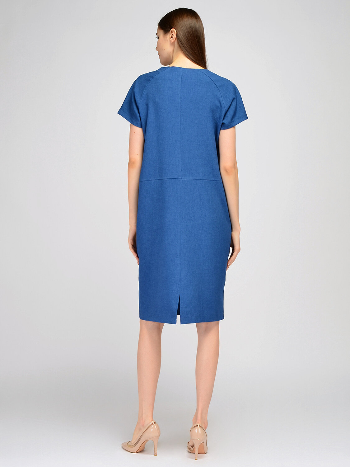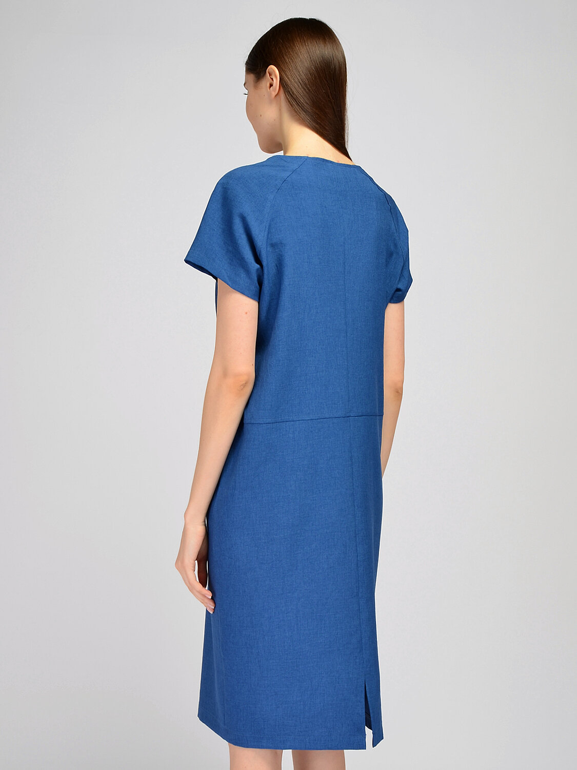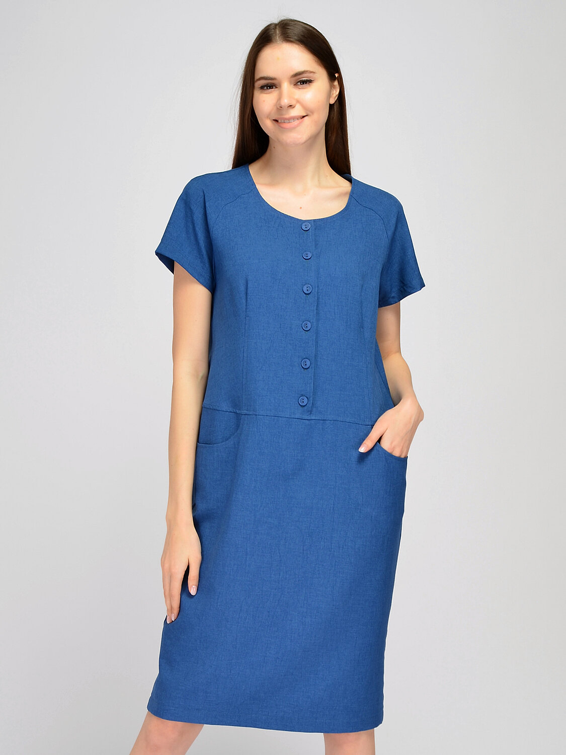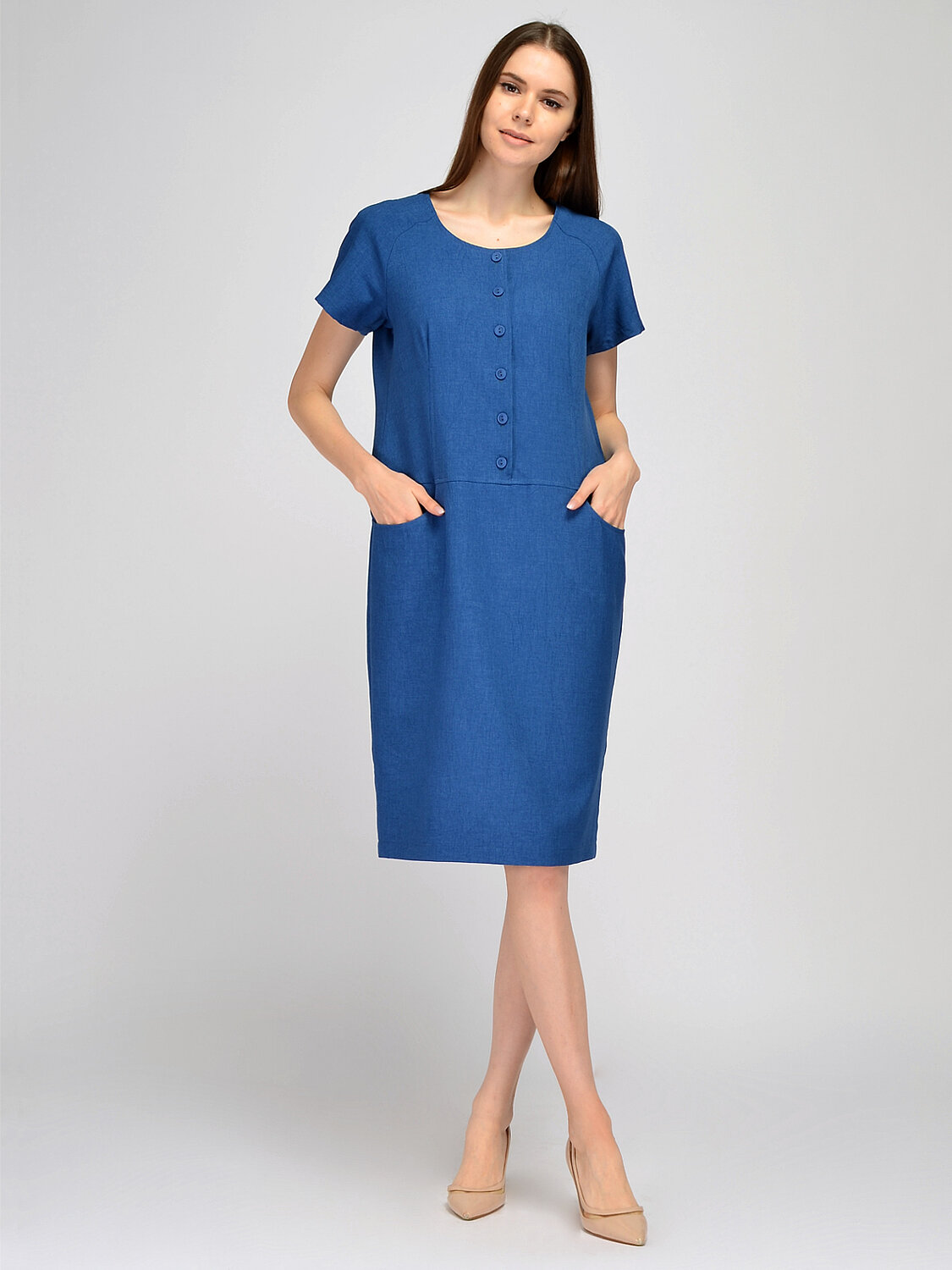 Платье миди с короткими рукавами. Лаконичное платье миди с короткими рукавами формы реглан идеально подойдёт для офисного или повседневного гардероба в теплое время года. Округлая горловина и короткие рукава обеспечивают ощущение максимального комфорта. Прямое платье миди застёгивается на пуговицы, а также на передней части платья расположены карманы в шве. Вырез горловины круглый. Без отделки горловины. Рукава короткие. Тип рукава реглан. Вид застежки пуговицы. Конструктивный элемент разрез. Крой прямой. Карманы в шве. Длина миди. Рекомендована стирка при температуре не более 30С. Платье миди с карманами гармонично дополнит и деловой образ, и повседневный, и торжественный. Обувь на высоком ходу и изящные украшения помогут создать офисный и романтичный образы. Открытая обувь на низком ходу и сумка шоппер завершат стильный городской образ в стиле кэжуал.