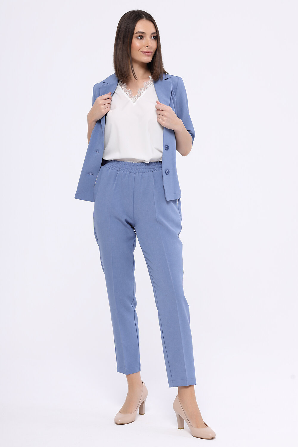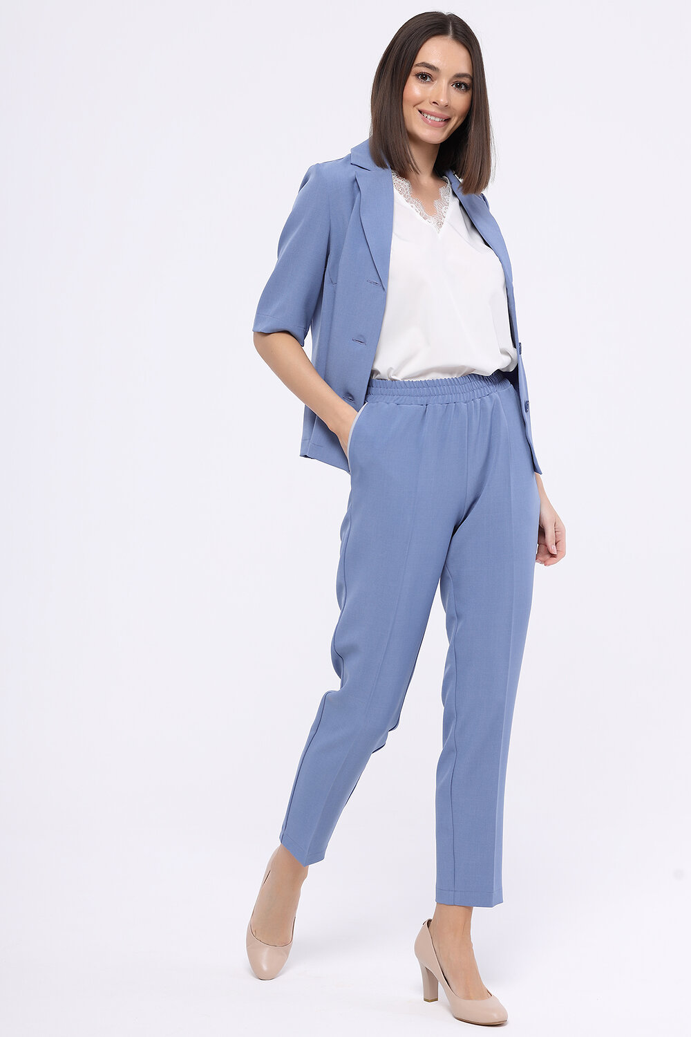Жакет прямого кроя идеально гармонирует с широкими брюками полной длины из нашей коллекции. Жакет можно использовать как самостоятельный элемент, а можно надеть под него футболку или блузку с коротким рукавом и носить нараспашку. Укороченный жакет предполагает деловой стиль, поэтому старайтесь сочетать его с классической обувью.