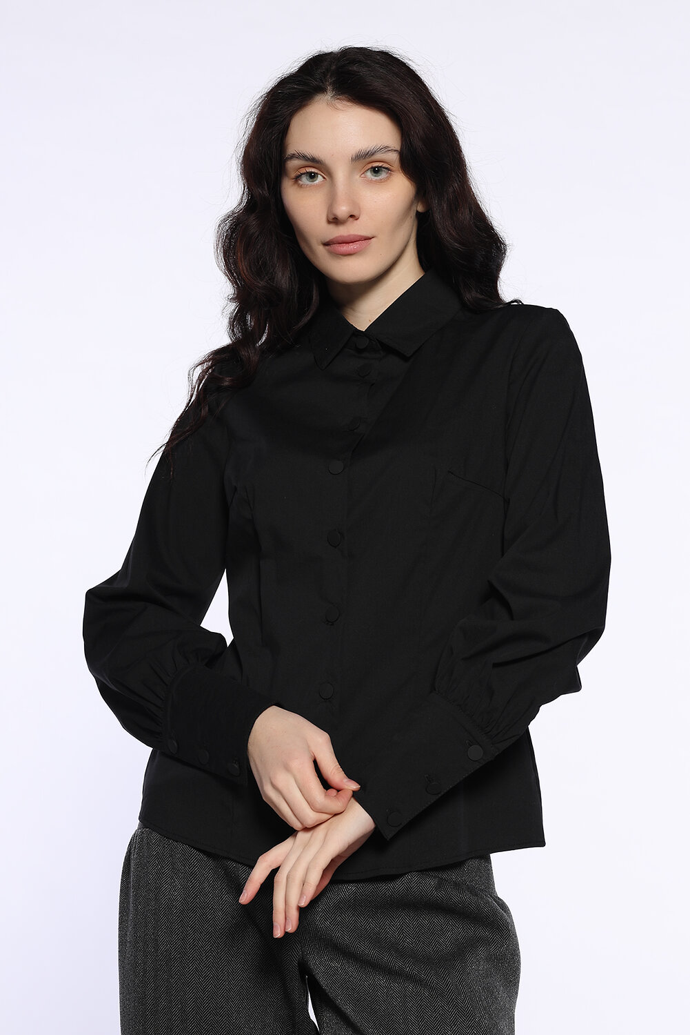 Классическая женская блузка рубашка с отложным воротником и длинными объемными рукавами станет очаровательным дополнением осенних образов в офис, на праздник или в театр. Лаконичный приталенный фасон блузки дополнен пышными рукавами с удлиненными манжетами и складками, придавая образу изысканности. Универсальная блузка впишется и в строгий, и в повседневный стиль в зависимости от подобранных вещей и аксессуаров.
