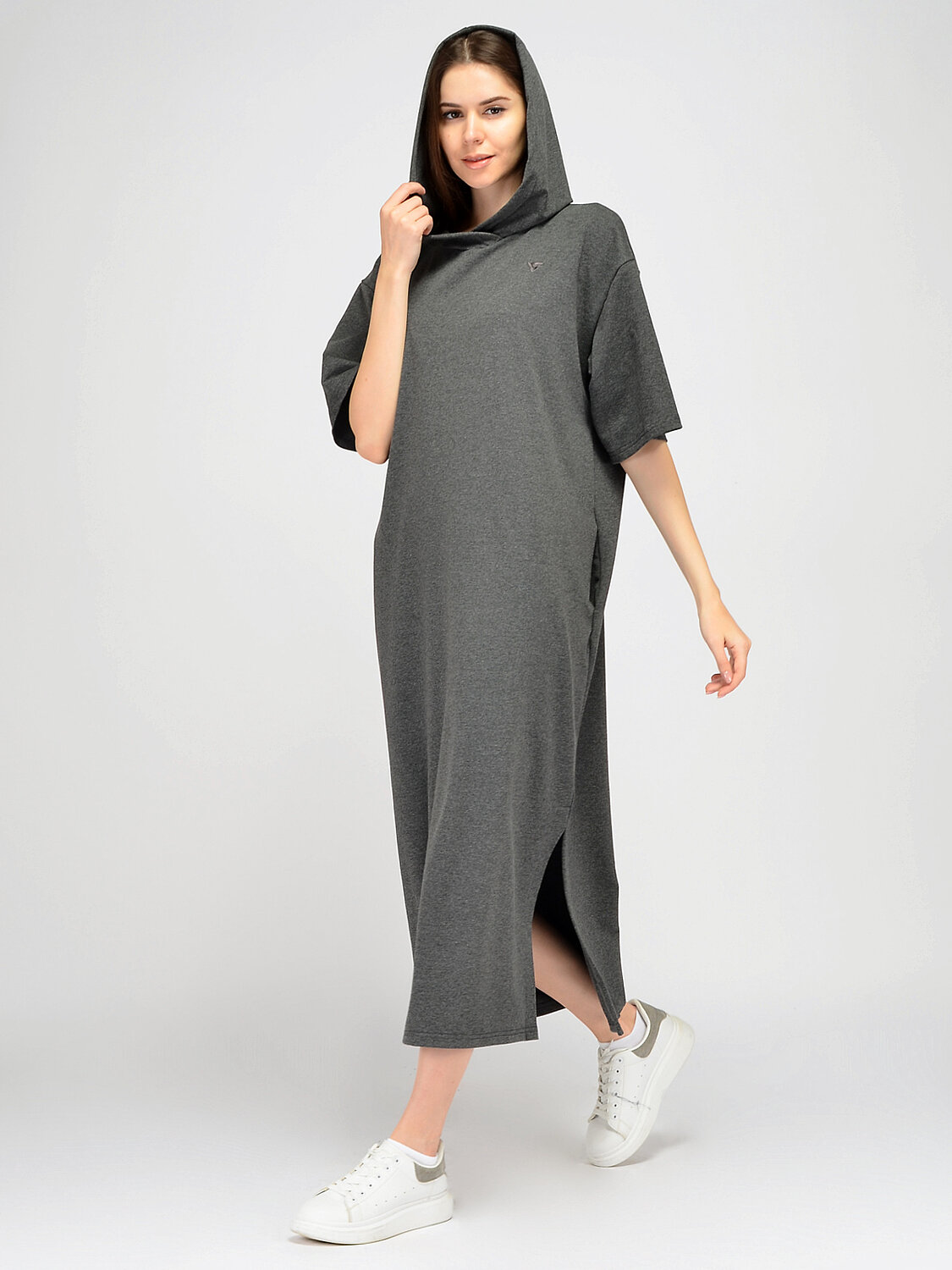 Спортивное платье оверсайз станет Вашей любимой моделью независимо от времени года. Объемное платье с капюшоном выполнено из качественной хлопковой ткани, позволяя Вашей коже дышать и чувствовать себя комфортно на протяжении всего дня. Просторная модель не имеет застежки. Хлопковая туника не облегает фигуру, скрывает ее возможные недостатки. На полочке вышит неброский фирменный логотип в тон изделия. Универсальная длина подойдет девушкам любого роста и телосложения. Удобные широкие рукава не сковывают движений, а разрезы по бокам сделают Вашу походку легкой и уверенной. Трикотажное изделие дополнено практичными вместительными карманами. Платье с капюшоном идеально подойдет для городского образа в стиле кэжуал.