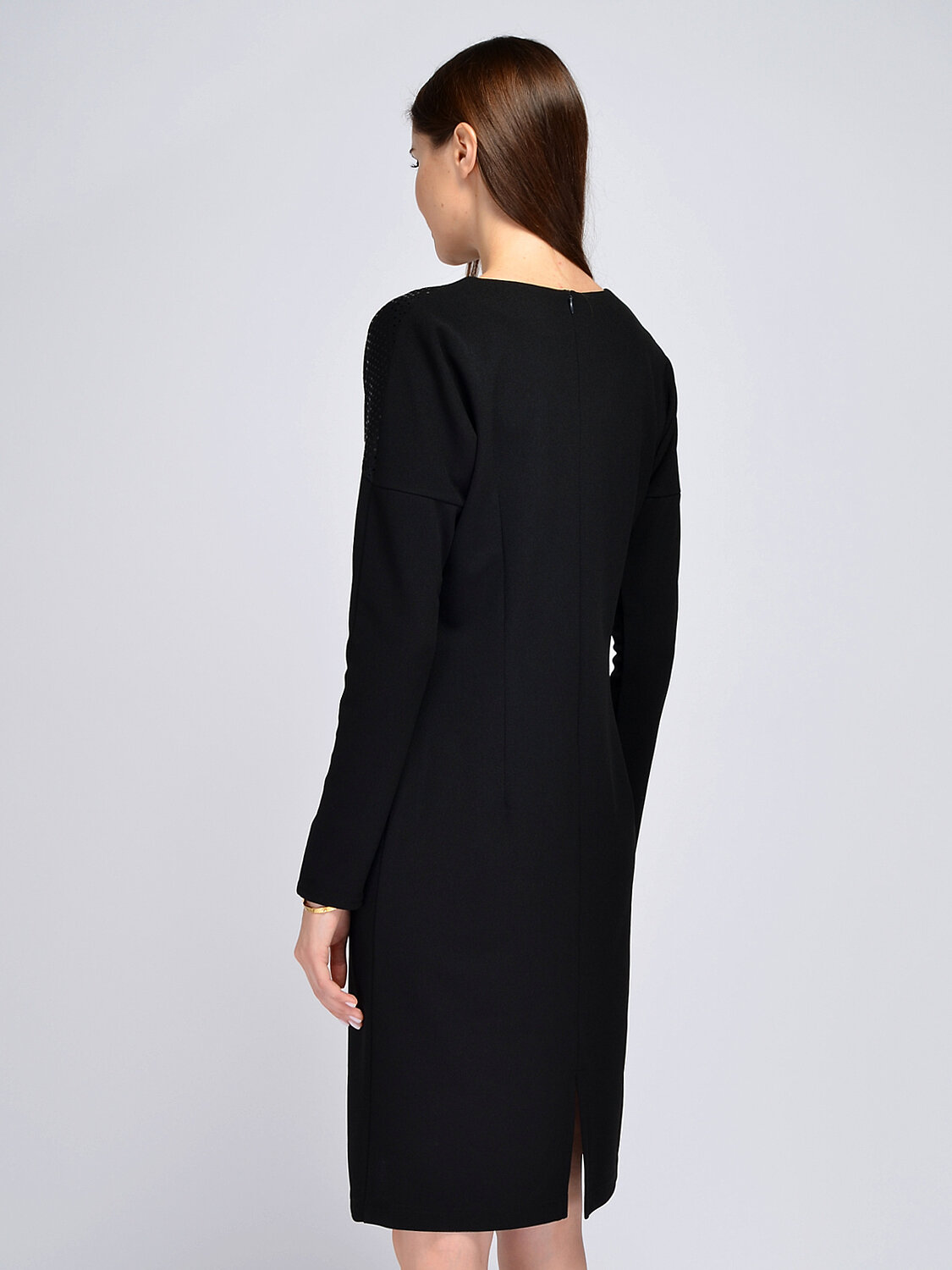 Праздничное платье миди с интересными декоративными деталями порадует свою обладательницу. Эффектное платье до колен имеет блестящую асимметричную отделку на полочке. Полуприлегающий приталенный крой подчеркнет достоинства фигуры. Платье имеет аккуратный округлый вырез горловины, немного приоткрывая ключицу. Закрытое лаконичное платье подойдет как взрослым женщинам, так и молодым девушкам. Нарядное платье с длинными рукавами станет интересным решением для праздников и торжеств: на Новый год, свадьбу, день рождения, юбилей. Элегантное вечернее платье выпускается в широком размерном ряду, в наличии большие размеры плюс сайз plus size. Стильное платье миди имеет цельнокроеный рукав формы летучая мышь. Завершите торжественный образ яркими украшениями, аккуратными аксессуарами и классической обувью: туфлями, сапожками, ботильонами. Почувствуйте себя женственно и уверенно в новогодней новинке!