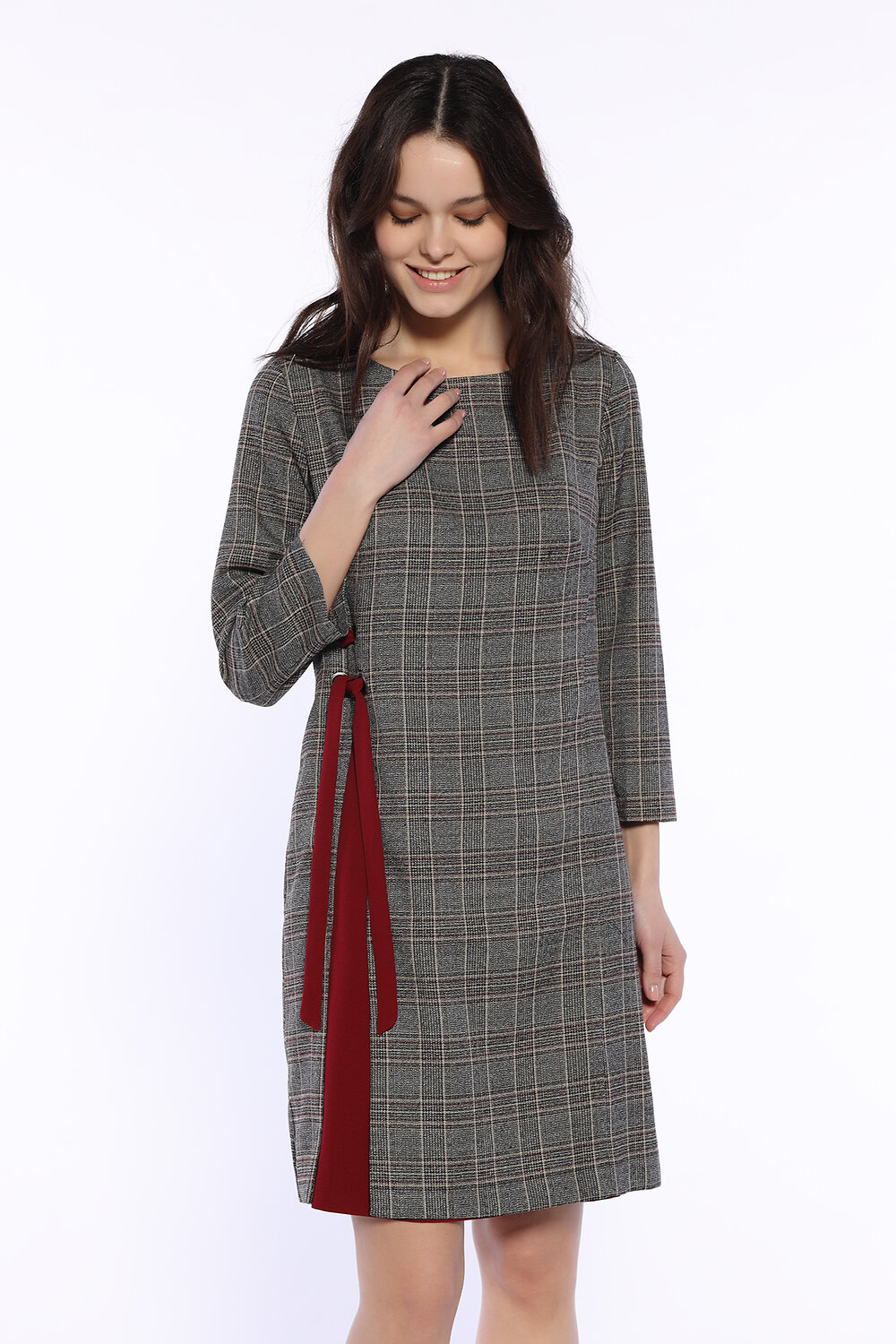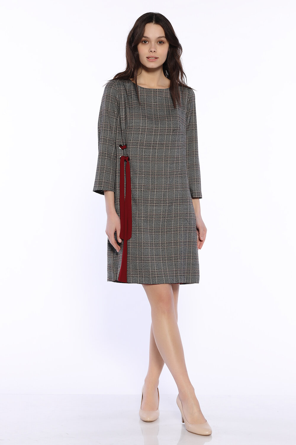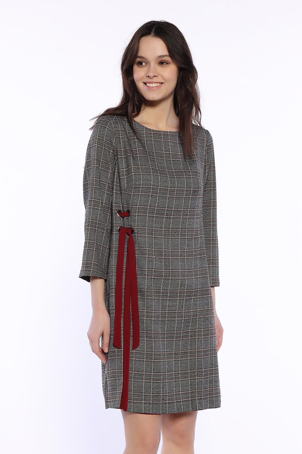 Приталенное платье миди поможет дополнить строгие офисные или нарядные образы. Округлый вырез горловины лодочка приоткрывает ключицу. Удобные прямые рукава три четверти не сковывают движений. Стильная универсальная расцветка в клетку останется актуальной еще долгие годы. Практичная длина немного выше колена подойдет девушкам и женщинам разного роста и возраста. Отличительной особенностью модели является контрастная вставка на передней части и люверсы с лентой. Такой акцент визуально вытянет силуэт и придаст всему образу женственности. Изделие застегивается на потайную молнию сзади. Классический фасон сочетается с обувью на каблуке. Чтобы дополнить праздничный комплект, подберите эффектные украшения и аксессуары. Клетчатая модель с прямой юбкой прекрасно будет смотреться не только на деловых встречах и вечерних мероприятий, но и в повседневности. Платье выполнено в разных цветовых сочетаниях. Вы обязательно найдете наряд по своему вкусу и будете чувствовать себя элегантно и уверенно!
