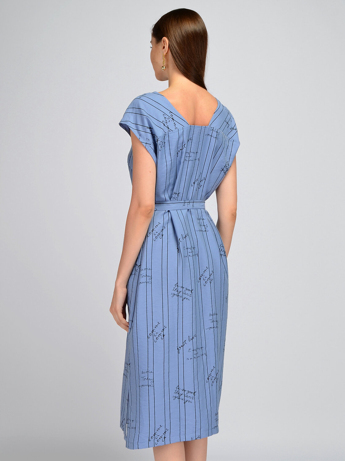 Лаконичное платье миди с короткими рукавами создаст удобный и женственный образ в летний сезон. Изящная округлая горловина приоткрывает ключицу и позволяет дополнить образ шейными украшениями. Короткие цельнокроеные рукава обеспечивают свободу движений. На платье предусмотрены вытачки на груди, поэтому модель прекрасно сядет на разные типы фигуры. Свободное платье комплектуется поясом в цвет, акцентируя внимание на талии и моделируя утонченный силуэт. На полочке располагаются накладные карманы, придавая образу практичности и удобства. По бокам находятся достаточно высокие разрезы, придавая легкости Вашей походке. Прямой крой платья поможет скрыть возможные недостатки фигуры, а пояс и вытачки подчеркнут ее достоинства. Летнее платье выполнено из приятного легкого материала, в основе состава вискоза, а это значит, что Вы будете чувствовать себя комфортно и уверенно на протяжении всего даже самого жаркого дня. Классический фасон может стать частью как офисного, так и повседневного или нарядного стиля. Завершенный образ будет зависеть от подобранной обуви, украшений и аксессуаров. Базовое платье придется по вкусу взрослым женщинам, молодым девушкам и будущим мамам.