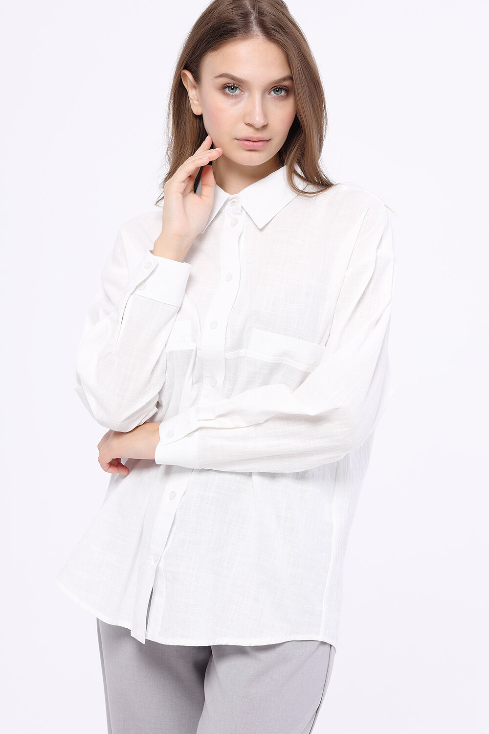 Прямая блузка с длинным рукавом.