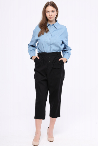 Летний гардероб каждой девушки нуждается в просторной лаконичной блузке. В составе блузки хлопок, дышащий материал, что позволит Вам чувствовать себя в ней максимально комфортно в жаркую погоду. Горловина блузки представляет собой классический отложной воротник. На передней части блузки расположены декоративные клапана, карманов нет.