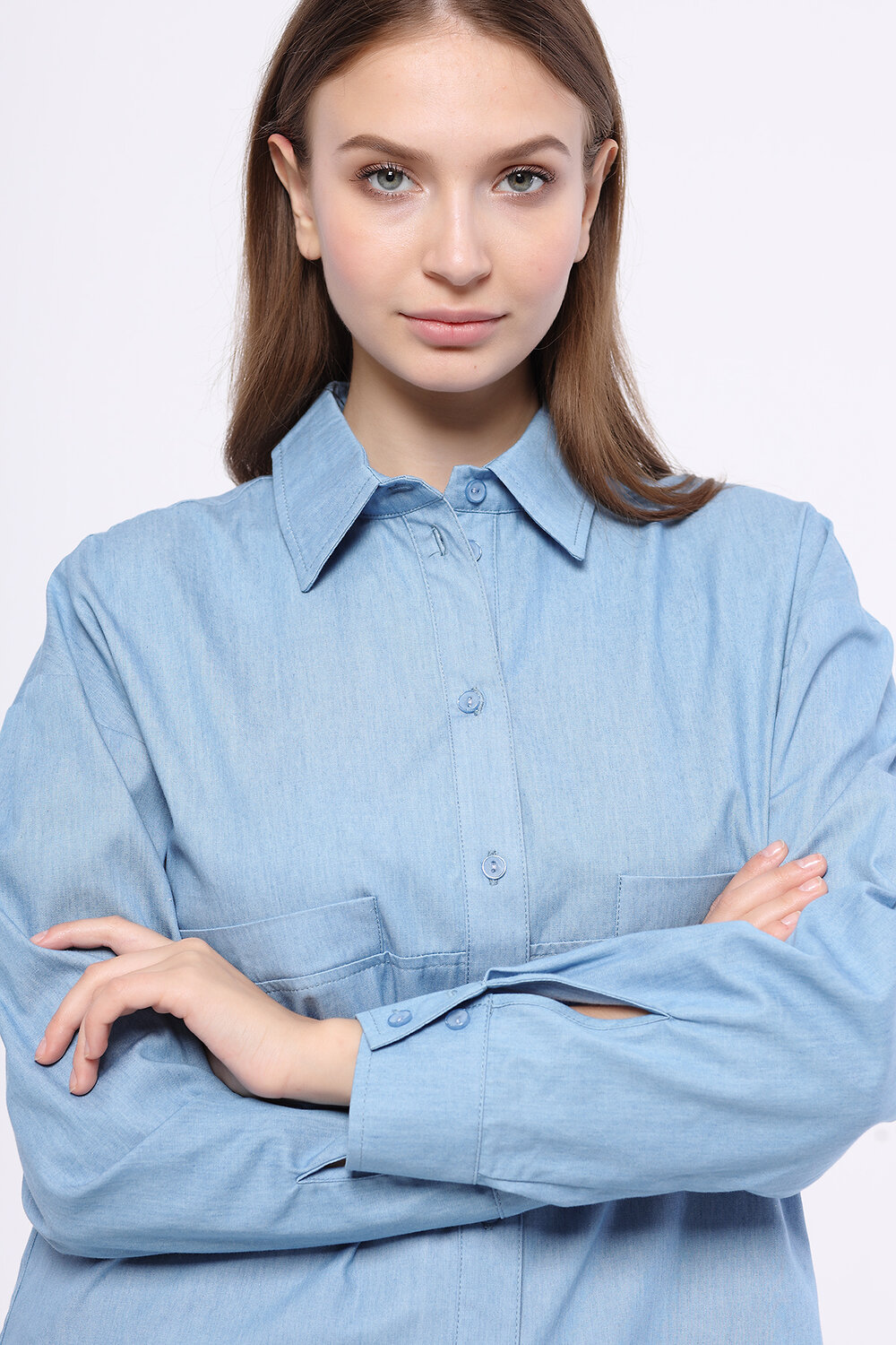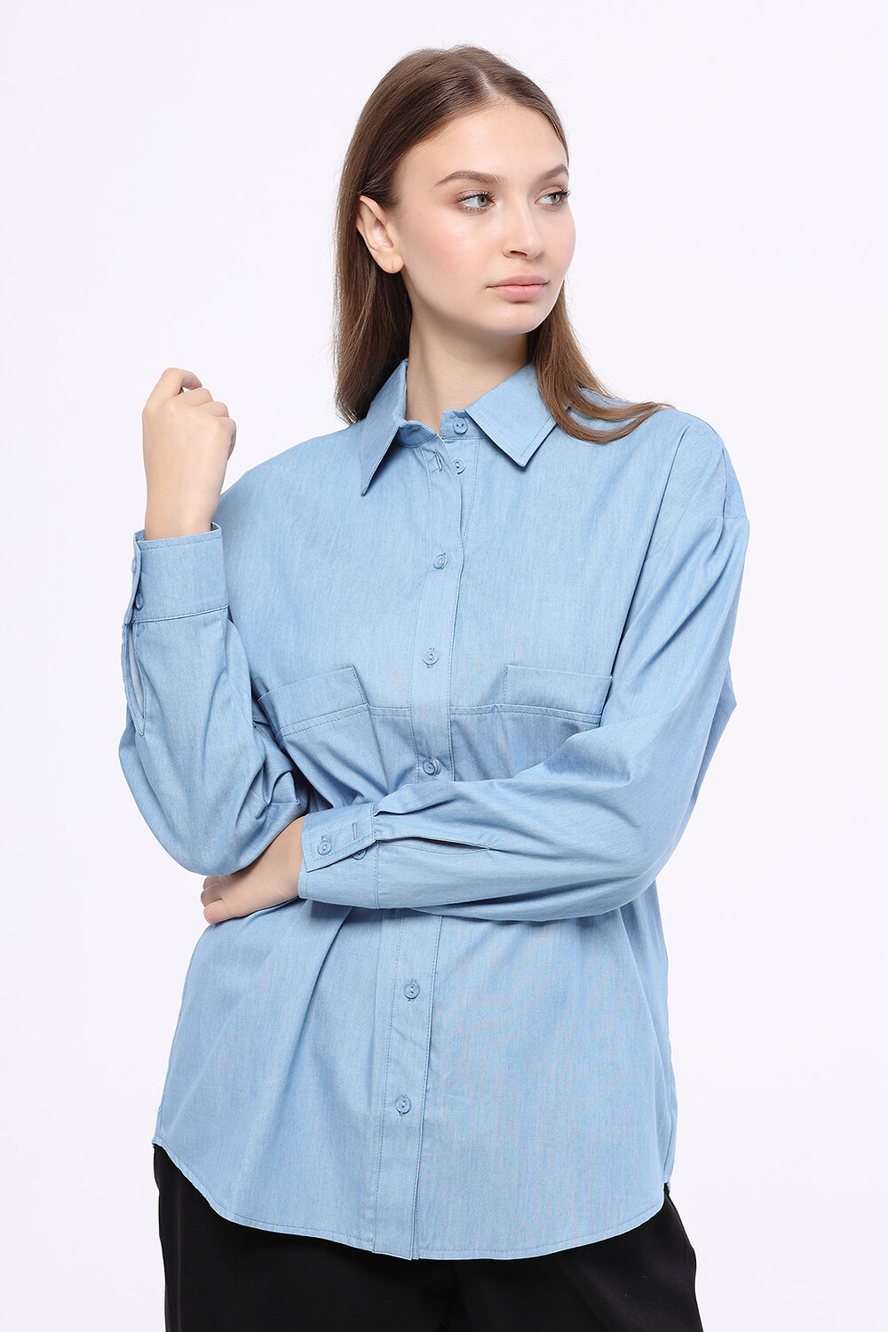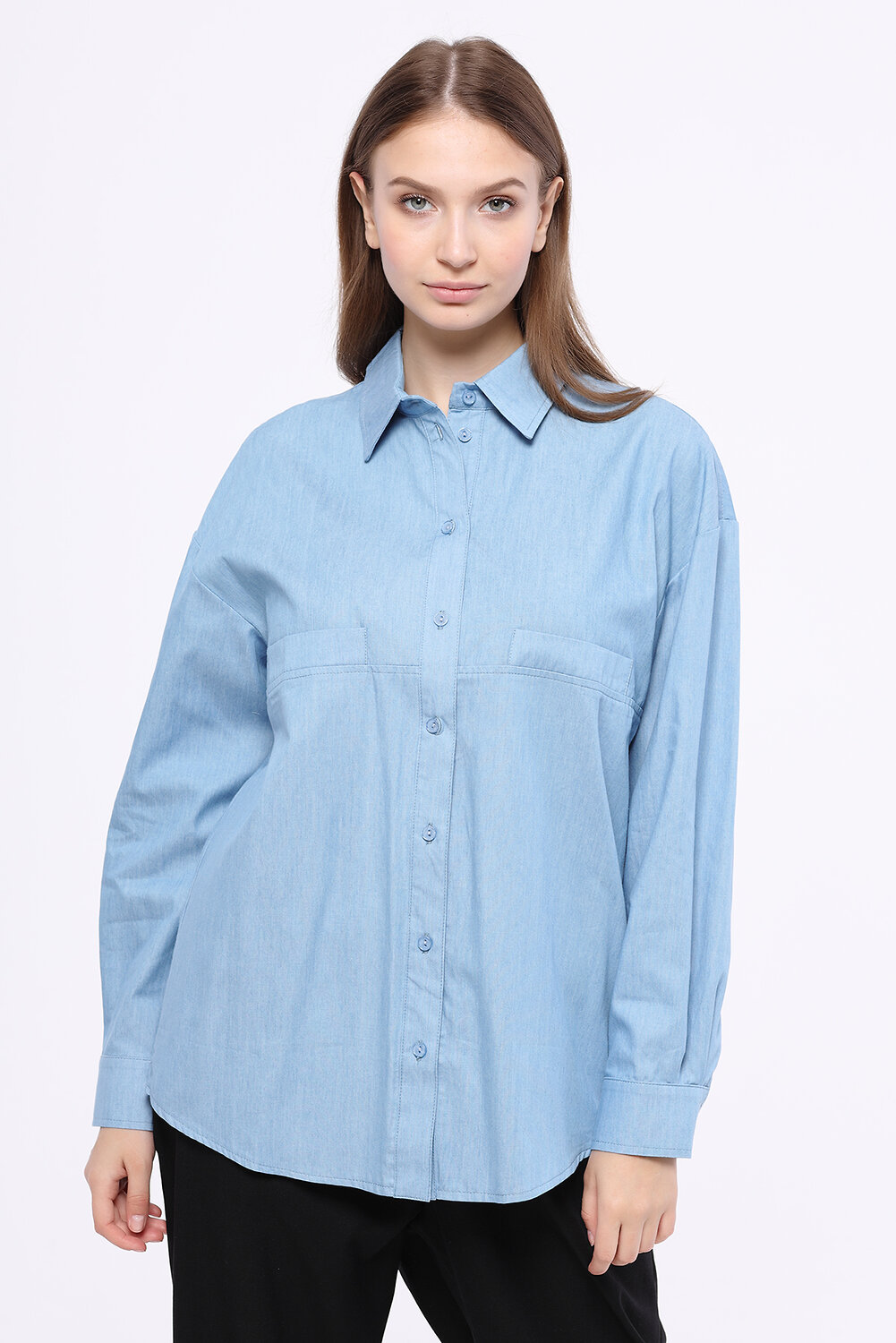 Прямая блузка с длинным рукавом.