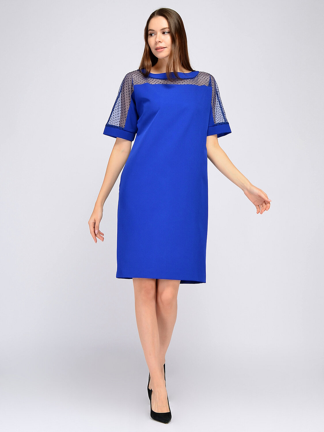 Вечернее платье с короткими рукавами.Если Вы подбираете вечернее платье для праздничного мероприятия, присмотритесь к платью миди прямого кроя с коротким рукавом. Платье декорировано эффектной сеткой для придания образу женственности. Деликатные округлый вырез оформлен материалом, из которого выполнено платье. Вырез горловины круглый. Без отделки горловины. Рукава короткие. Рукава цельнокроеные. Форма рукава широкий. Вид застежки молния. Декоративный элемент сетка. Длина миди. Крой прямой. Конструктивный элемент разрез. Без карманов. Рекомендована стирка при температуре 30С.Создайте яркий образ для торжественного мероприятия, дополнив платье миди прямого кроя элегантными туфлями на каблуке, акцентными аксессуарами и высокой прической. Если станет прохладно, накиньте на плечи палантин или удлинённый жакет.