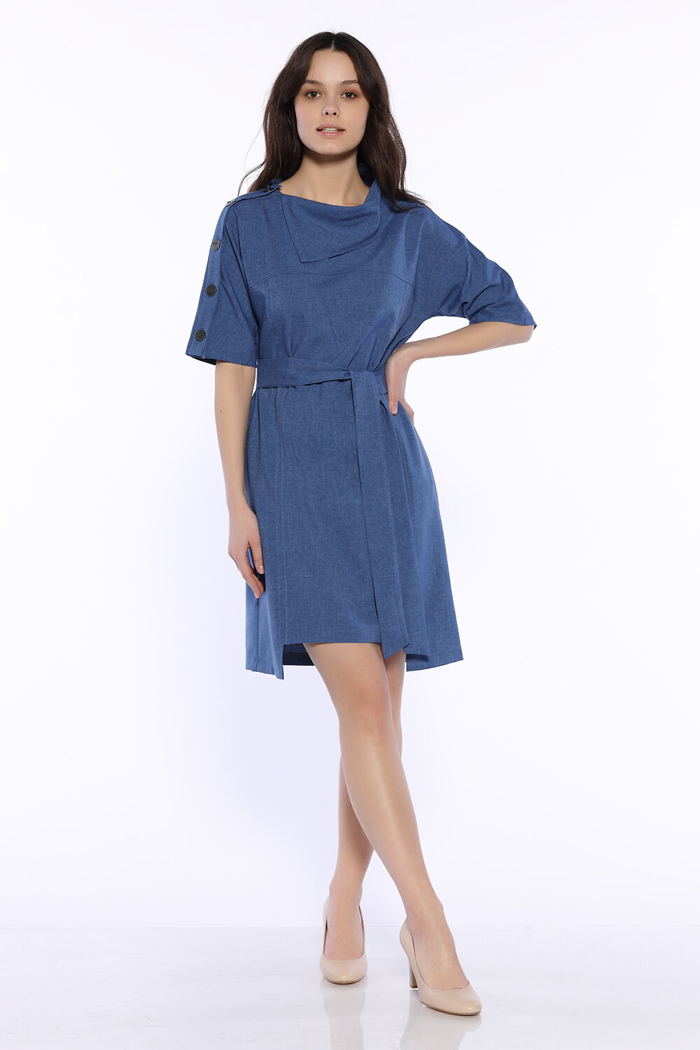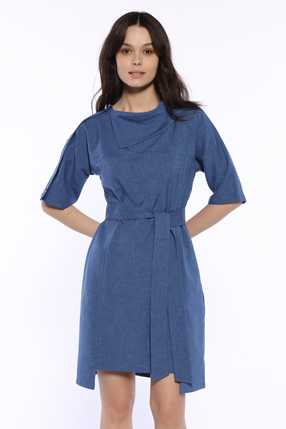 Офисное платье мини поможет создать элегантный образ для работы, учебы или праздника. Летнее платье имеет изящный фантазийный воротник асимметричного кроя. Мини платье застегивается на пуговицы, которые проходят по рукаву. Стильное платье комплектуется поясом в цвет изделия, подчеркивая линию талии и моделируя женственный силуэт. Спереди однотонное платье имеет квадратный вырез на юбке, визуально удлиняя ноги и делая фигуру более стройной. Свободный крой платья скрывает возможные недостатки фигуры. Удобные рукава до локтя не стесняют движений. Приталенное мини платье подойдет взрослым женщинам и молодым девушкам. Базовая модель подойдет для повседневной носки или для торжественных случаев. Платье выполнено из качественной плотной ткани, с большим процентом хлопка в составе. Хлопковое платье станет идеальным выбором для жаркой погоды, позволяя Вашей коже дышать и чувствовать себя комфортно на протяжении всего дня.