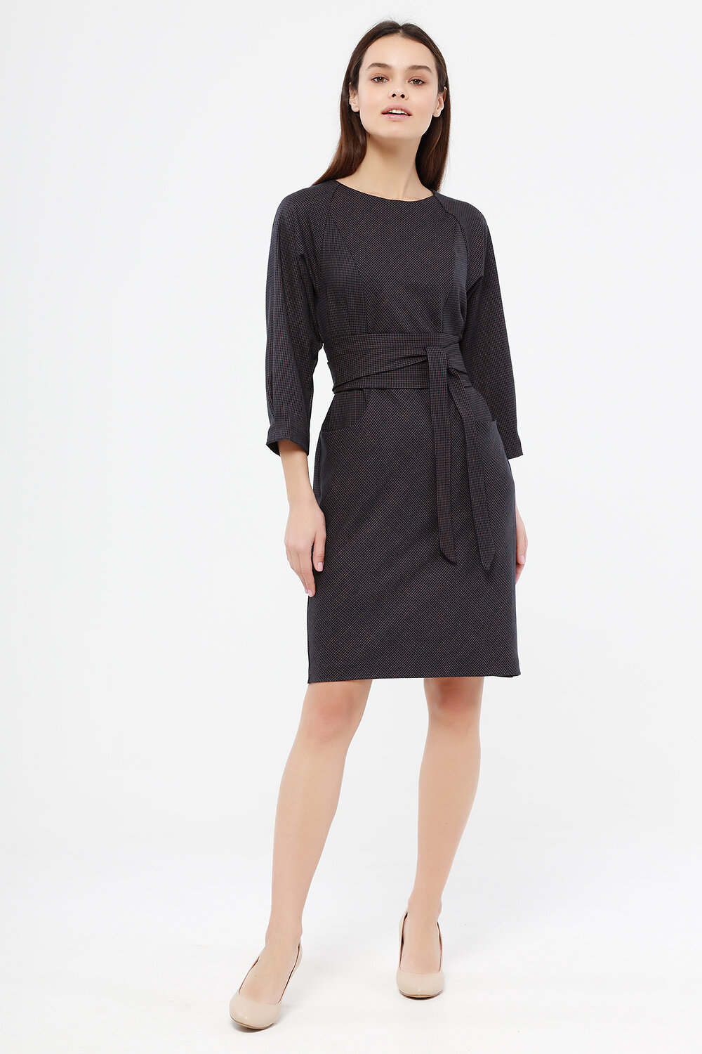 Платье женское приталенного силуэта. Рукав-реглан 3/4.На полочке в подрезах карманы.Платье дополнено поясом-кушаком.