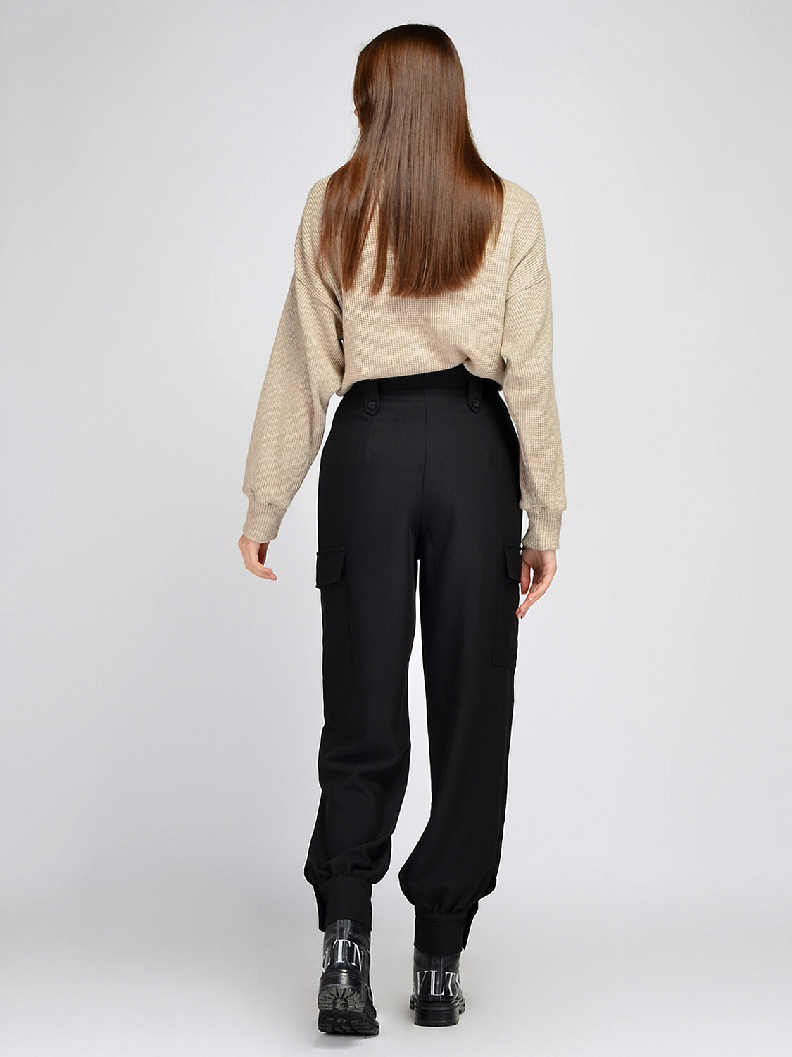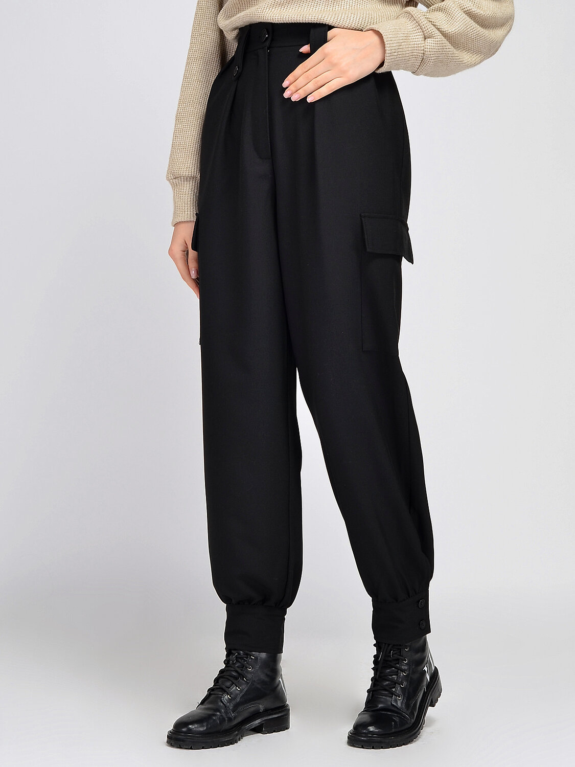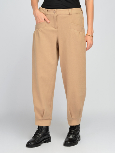 Модные свободные женские брюки станут важным элементом Вашего повседневного или рабочего образа. Прямые брюки в лаконичных универсальных цветах дополнены интересными декоративными элементами. Шлевки для ремня выполнены необычным образом, застегиваются на пуговицы, а из-под пояса собираются небольшие и эффектные декоративные складки, что создает на брюках струящийся эффект. Широкие брюки напоминают классический фасон, но сбоку расположены накладные карманы с клапанами, что создает актуальный силуэт брюк джоггеров, который является трендом последние сезоны. Низ брючин оформлен классическими манжетами, а это значит, что брюки сочетаются с различной обувью, и ничто не будет мешать при ходьбе. Стильные струящиеся брюки с высокой посадкой смогут дополнить как деловой, так и расслабленный повседневный образ. Сочетайте брюки с любым верхом: водолазки, блузки, рубашки, футболки, жакеты, кардиганы, джемперы. В качестве обуви выбирайте к Вашу образу ту, что подходит по случаю и настроению. Это могут быть ботильоны, ботинки, лофферы, челси, кеды, туфли или другое. Просторные брюки с высокой талией выпускаются в широком размерном ряду, прекрасно сядут на любую фигуру и скроют ее возможные недостатки.