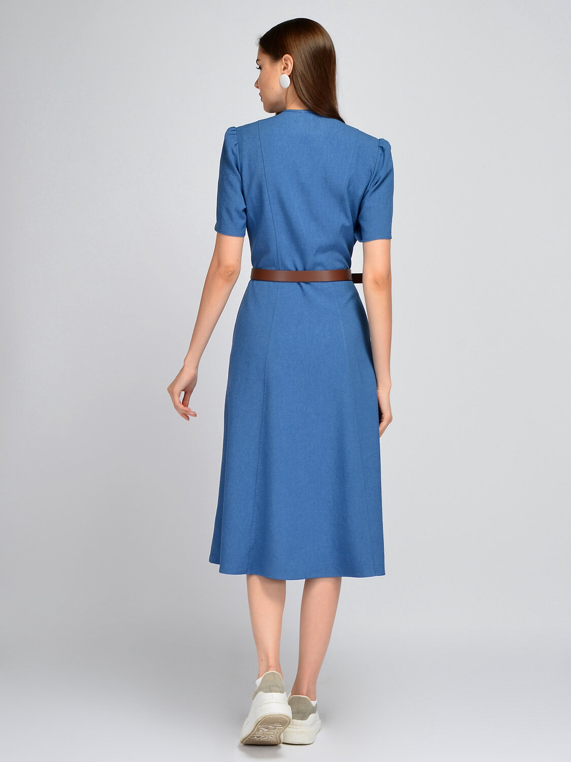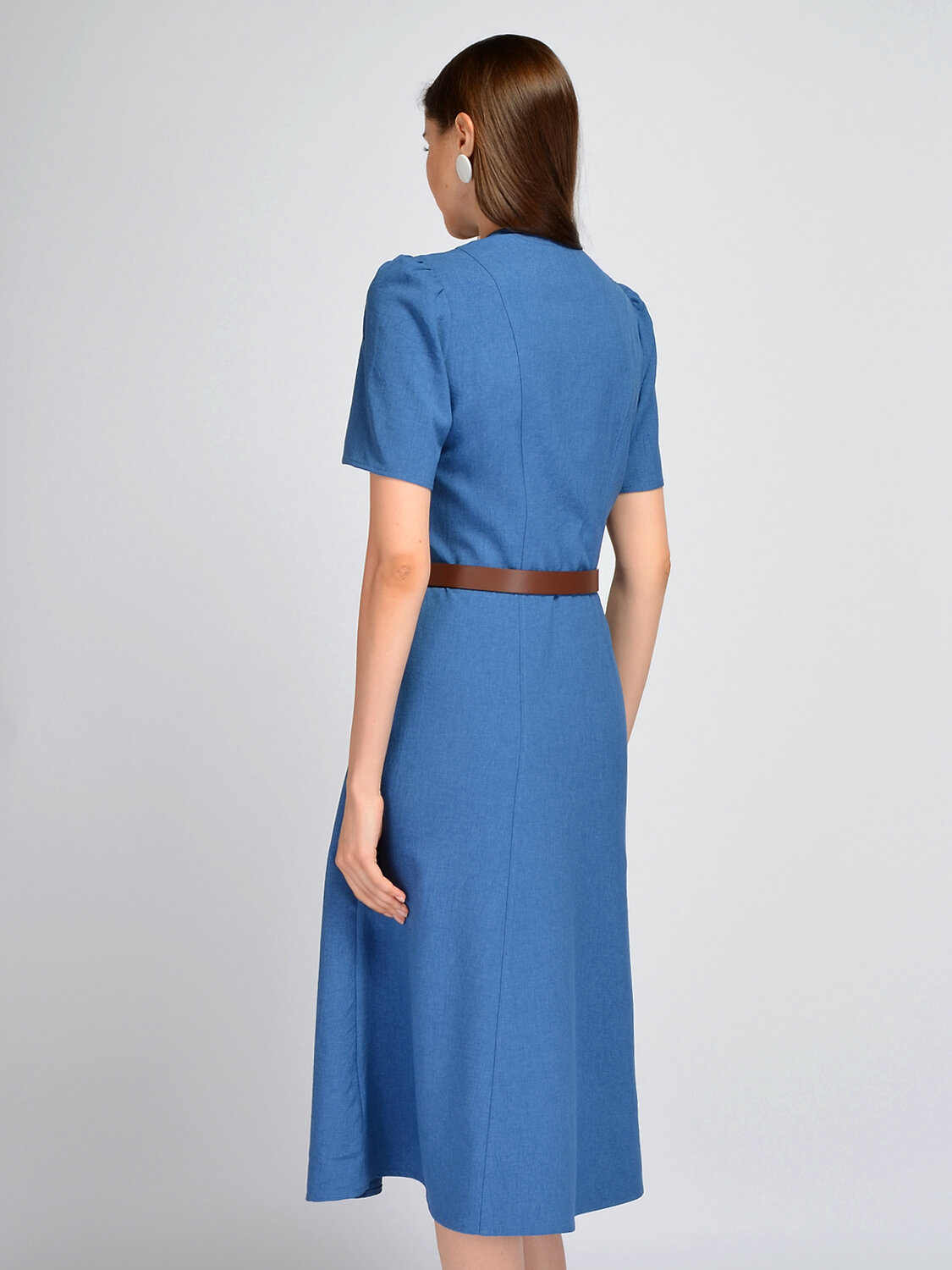 Стильное летнее платье с укороченными рукавами станет универсальной новинкой Вашего гардероба. Изящный V-образный вырез горловины визуально удлиняет линию шеи и позволяет подчеркнуть декольте украшениями. Короткие рукава фонарики имеют свободный крой, не сковывают движений. Платье А силуэта комплектуется ремешком, который акцентирует внимание на талию и моделирует утонченный женственный силуэт. Платье миди предусматривает практичные боковые карманы для разных полезных мелочей. Свободное приталенное платье скроет возможные недостатки фигуры. Летнее платье выполнено из приятного наощупь материала с вискозой в составе, что позволит Вам чувствовать себя комфортно и уверенно даже в самый жаркий день. Благодаря легкой струящейся ткани Ваша походка будет воздушной и изящной. Базовый фасон придется по вкусу и молодым девушкам, и взрослым женщинам. Вы можете создать строгий офисный образ, повседневный в стиле кэжуал или нарядный образ для вечеринок и торжественных мероприятий. Платье трапеция с поясом станет Вашей любимой летней новинкой!