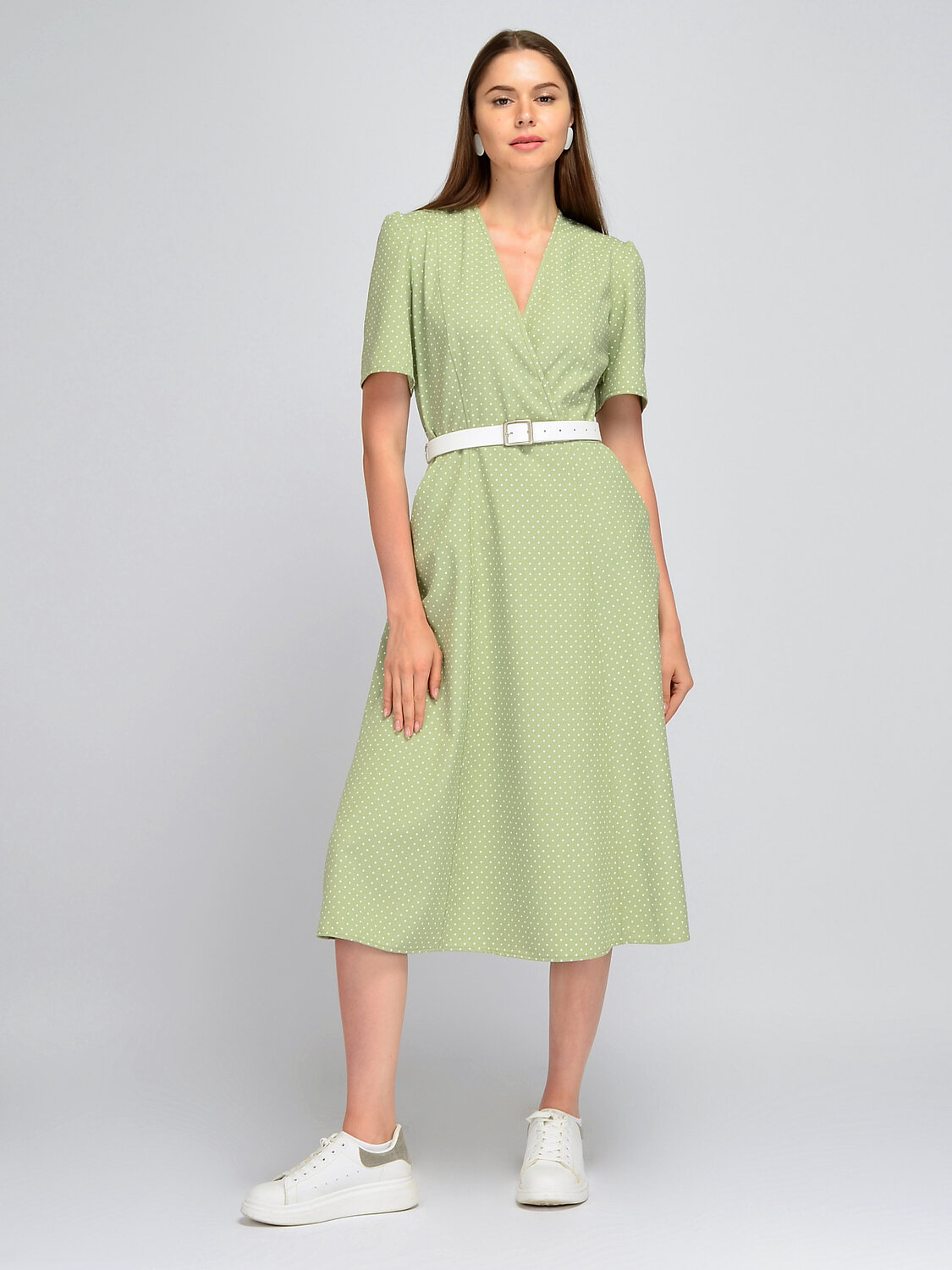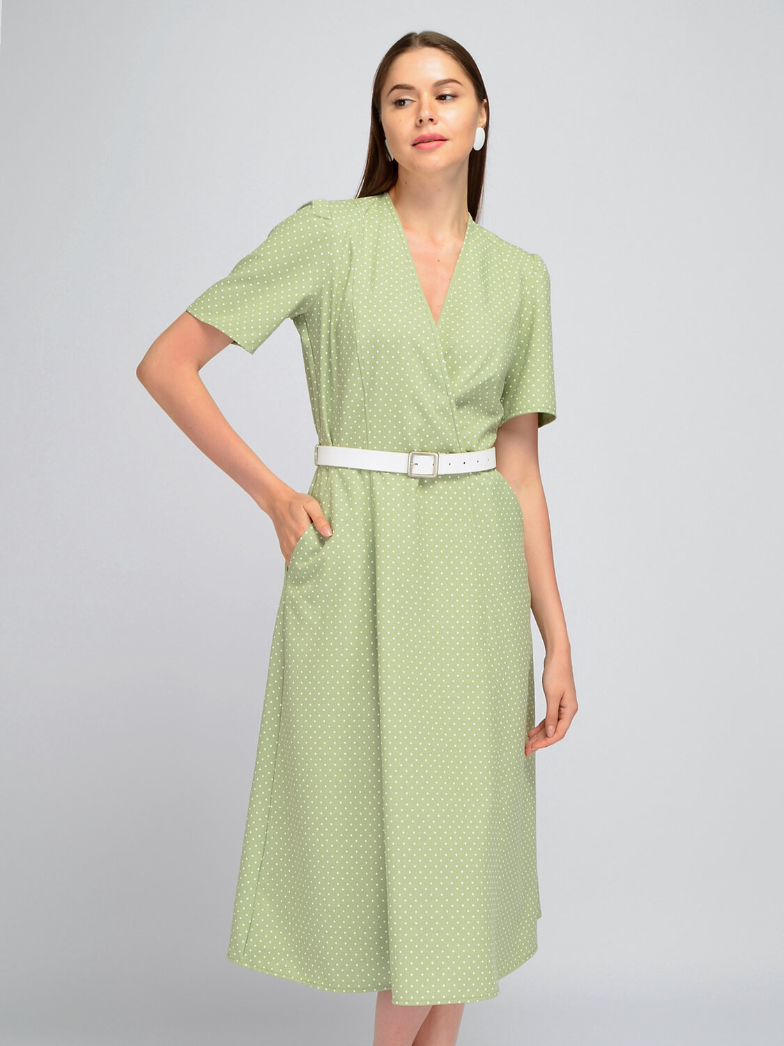 Стильное летнее платье с укороченными рукавами станет универсальной новинкой Вашего гардероба. Изящный V-образный вырез горловины визуально удлиняет линию шеи и позволяет подчеркнуть декольте украшениями. Короткие рукава фонарики имеют свободный крой, не сковывают движений. Платье А силуэта комплектуется ремешком, который акцентирует внимание на талию и моделирует утонченный женственный силуэт. Платье миди предусматривает практичные боковые карманы для разных полезных мелочей. Свободное приталенное платье скроет возможные недостатки фигуры. Летнее платье выполнено из приятного наощупь материала с вискозой в составе, что позволит Вам чувствовать себя комфортно и уверенно даже в самый жаркий день. Благодаря легкой струящейся ткани Ваша походка будет воздушной и изящной. Базовый фасон придется по вкусу и молодым девушкам, и взрослым женщинам. Вы можете создать строгий офисный образ, повседневный в стиле кэжуал или нарядный образ для вечеринок и торжественных мероприятий. Платье трапеция с поясом станет Вашей любимой летней новинкой!