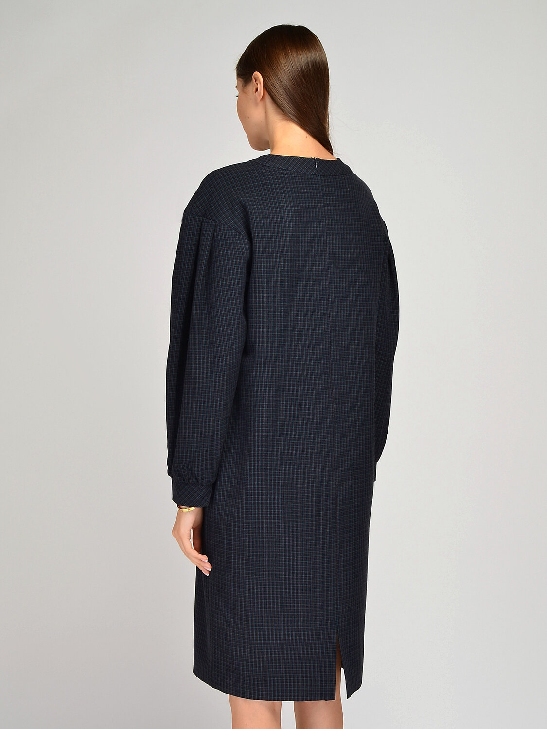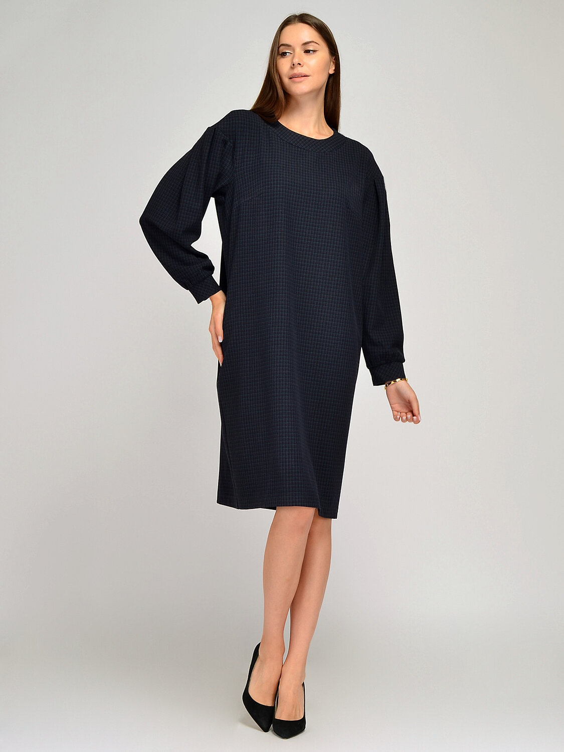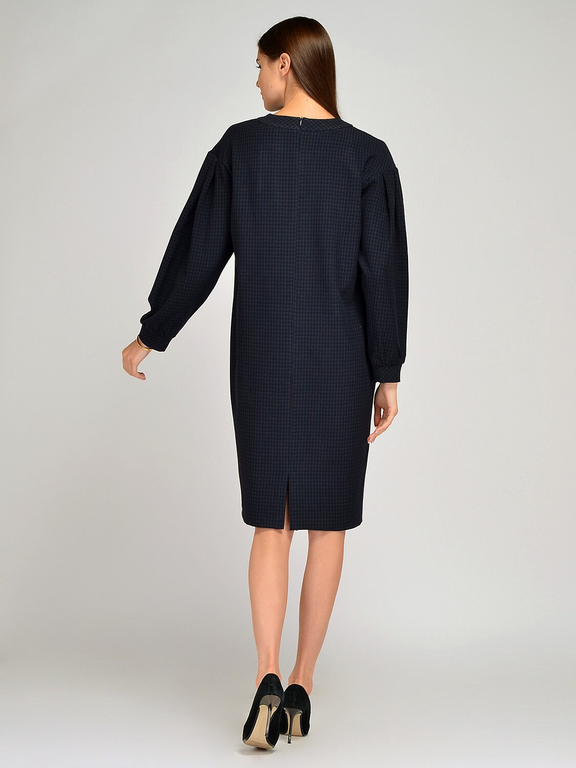 Удобное женское платье миди свободного кроя с объемными рукавами со складками станет беспроигрышным вариантом в осеннем гардеробе. Свободный фасон скроет возможные недостатки фигуры, а разрез сзади позволит чувствовать себя комфортно при ходьбе. Прямое платье будет уместно смотреться в офисе, на прогулке, на торжественном мероприятии или в театре. Чтобы подчеркнуть талию и вытянуть силуэт, подберите к платью ремень и обувь на высоком ходу. Дополните образ яркими украшениями, чтобы получился праздничный комплект.