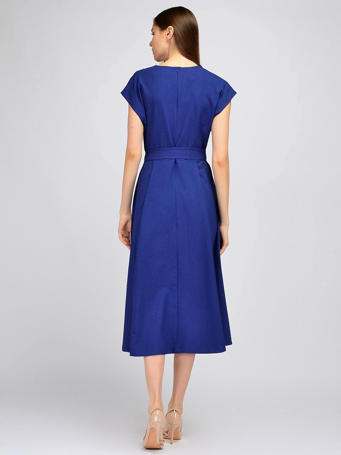 Платье миди с поясом. Если Вы ищете элегантное летнее платье на выход или на работу, обратите внимание на платье миди с акцентным поясом. Деликатный V-образный вырез приоткрывает ключицу, а струящаяся ткань платья будет притягивать взгляды к Вашей походке. На платье миди предусмотрены удобные втачные карманы. V-образный вырез. Без отделки горловины. Рукава короткие. Рукава цельнокроеные. Комплектация пояс. Вид застежки молния. Декоративные элементы складки, карманы. Карманы втачные. Длина миди. Крой приталенный. Рекомендована стирка при температуре не более 30С. Приталенное платье миди с комплектным поясом поможет создать нужное настроение на торжественном мероприятии или на романтической встрече. Завершите утонченный образ обувью на каблуке, небольшой сумочкой на тонком ремешке и лаконичными украшениями.