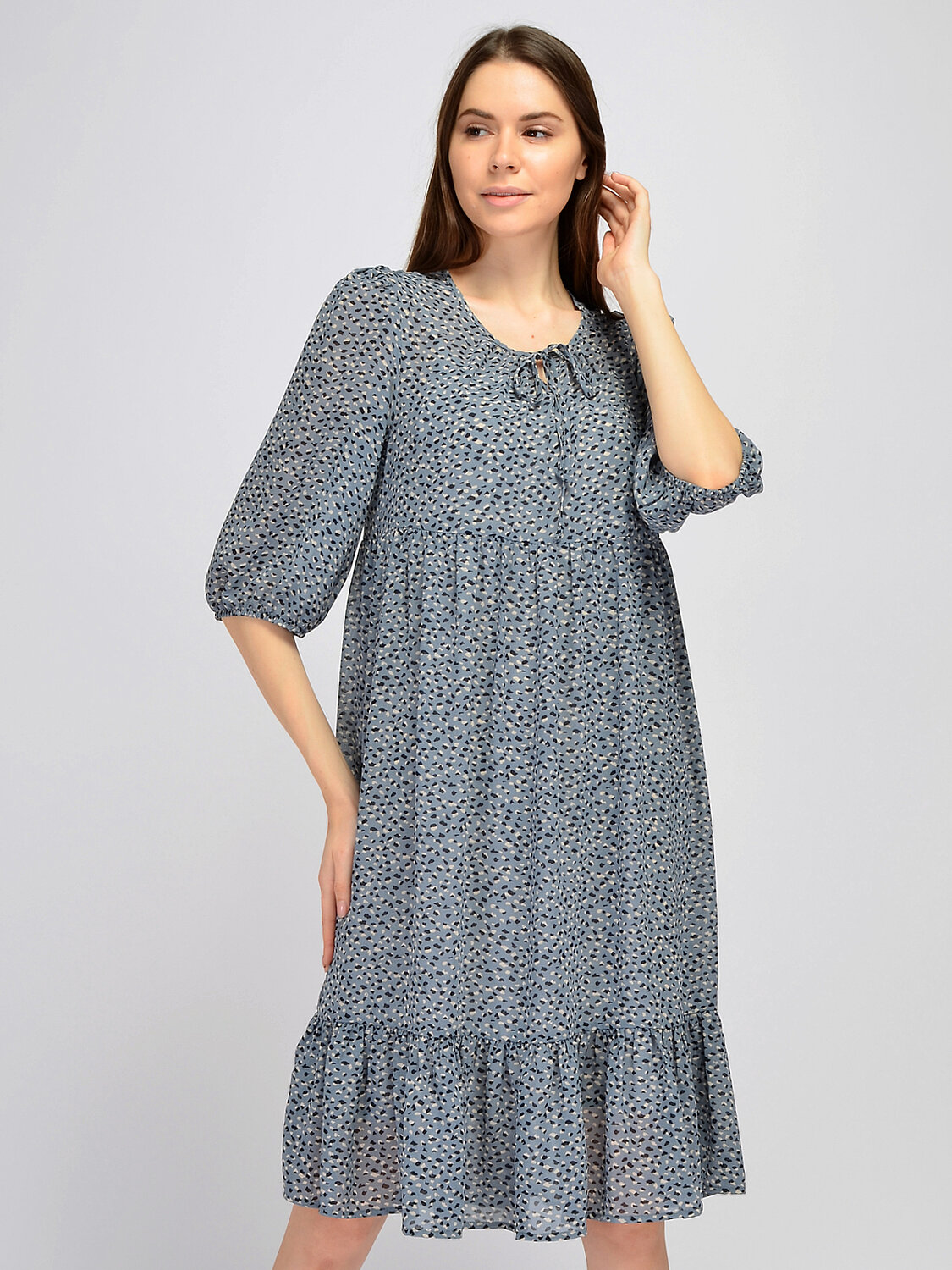 Платье миди с оборками.