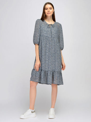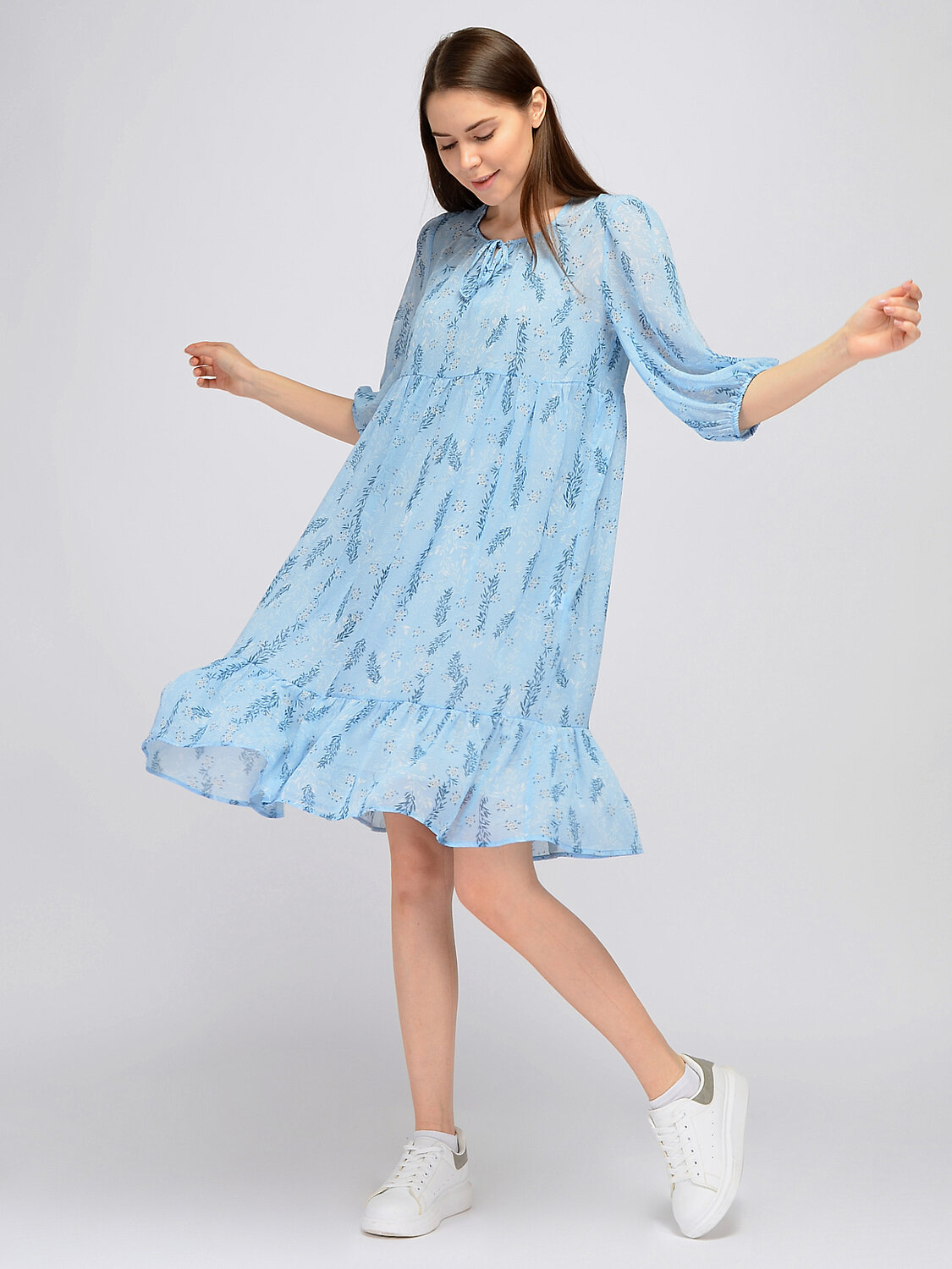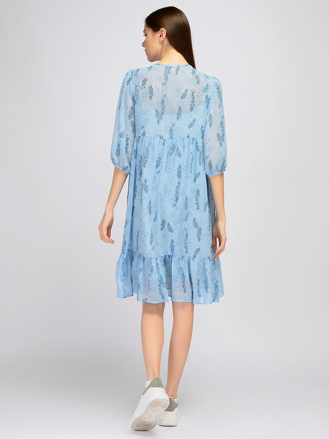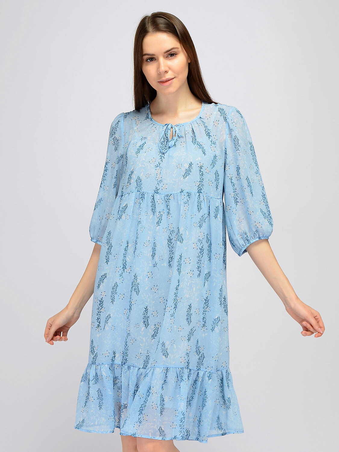 В составе платья полиэстер 100%. Вырез горловины - круглый. Без отделки горловины. Рукава до локтя. Без застёжки. Декоративный элемент - оборки. Длина миди. Подкладка - нижнее платье. Крой широкий. Модель платья - прямое. Покрой свободный. Без карманов. Рукав втачной. Рекомендована стирка при температуре не более 30С.