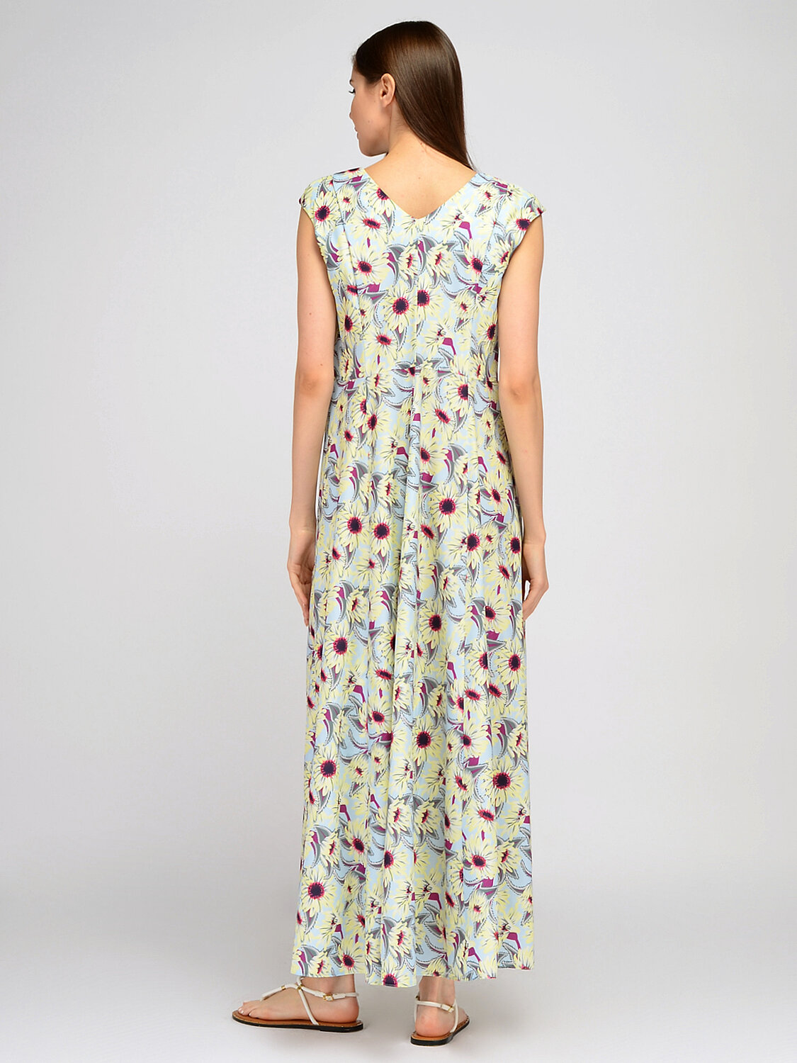 Приталенное платье макси без застёжки подарит ощущение лёгкости и комфорта в жаркий сезон. Лаконичный фасон выполнен в ярких цветочных расцветках, которые идеально подойдут для летнего гардероба. Платье макси без рукавов с широкой юбкой позволит Вам чувствовать себя свободно на прогулке и на отдыхе.