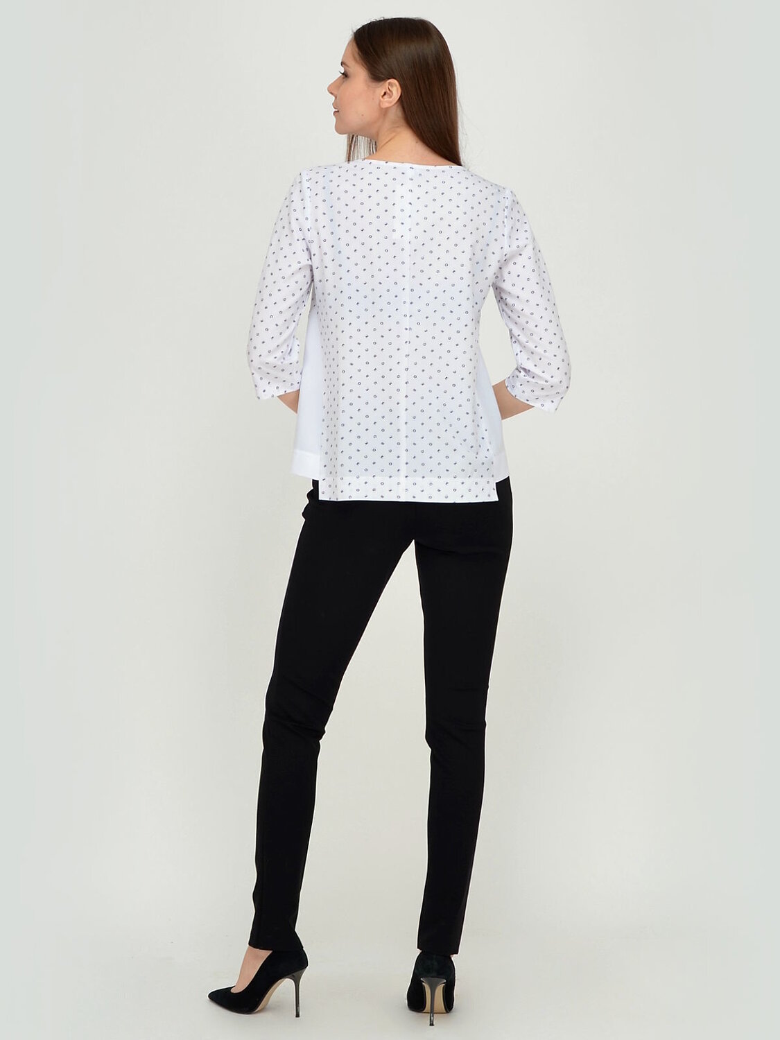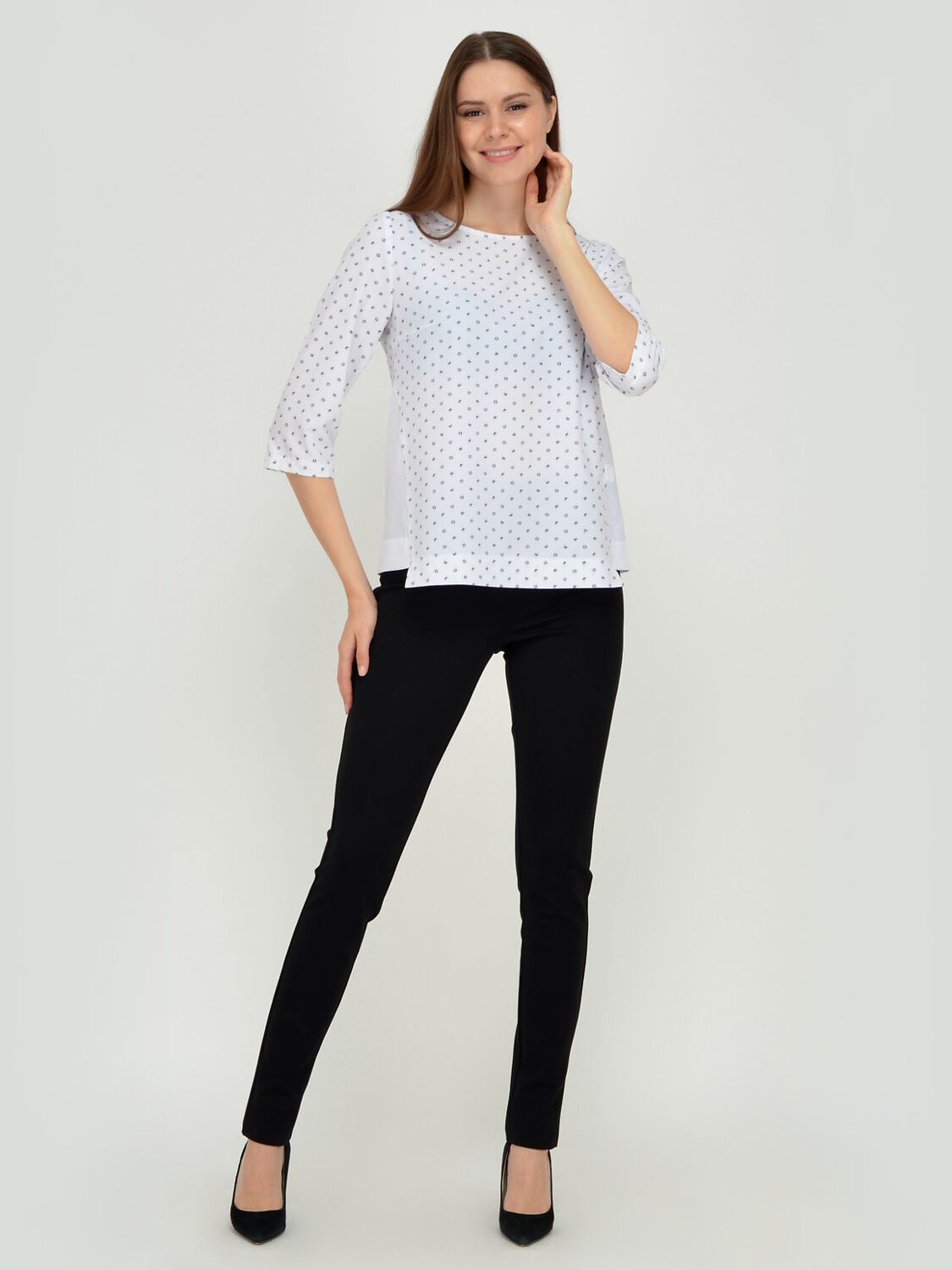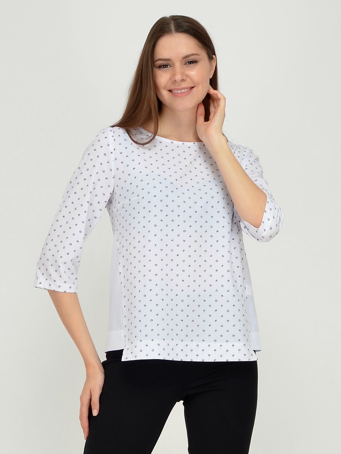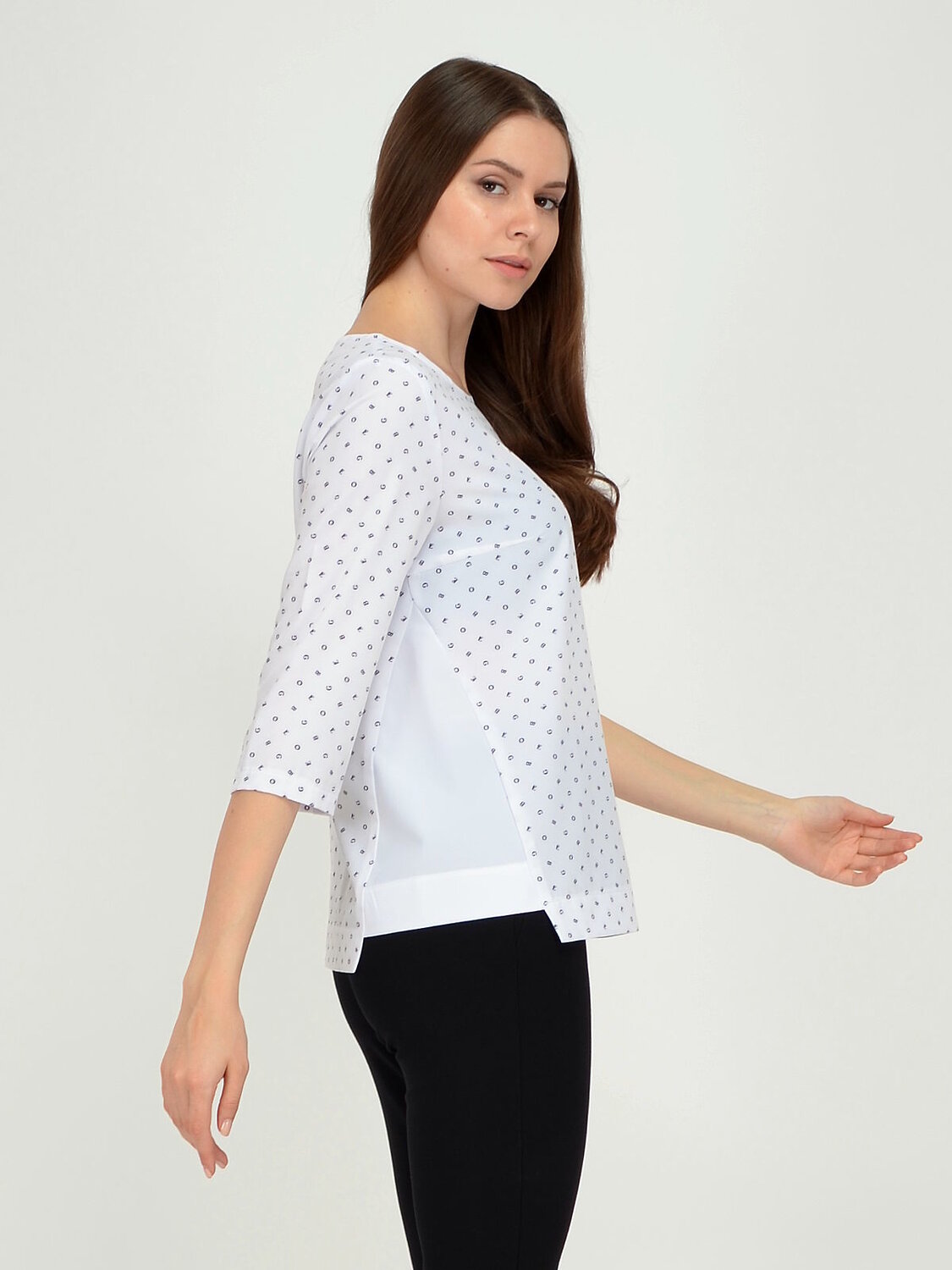 Блузка женская прямого силуэта с рукавом 3/4.По бокам декоративные вставки. Низ изделия фигурный.