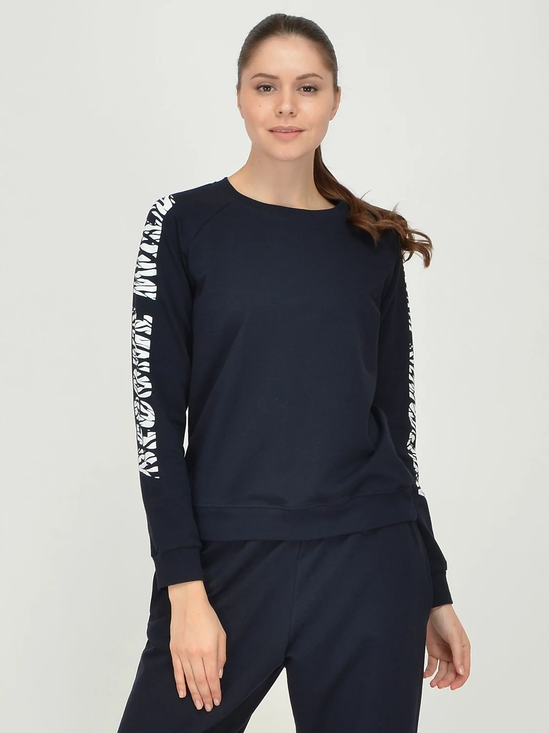 Свитшот женский из хлопкового трикотажа. Рукав-реглан с принтом.